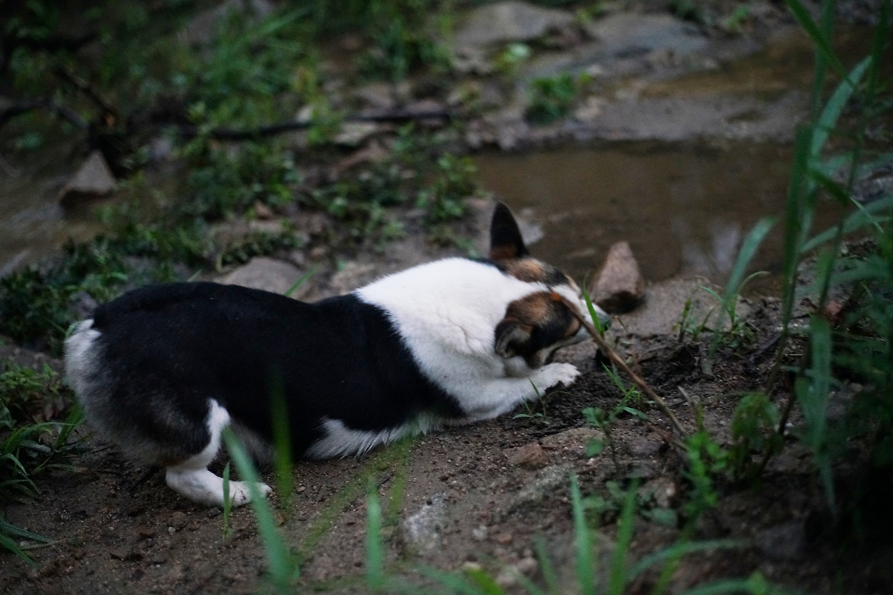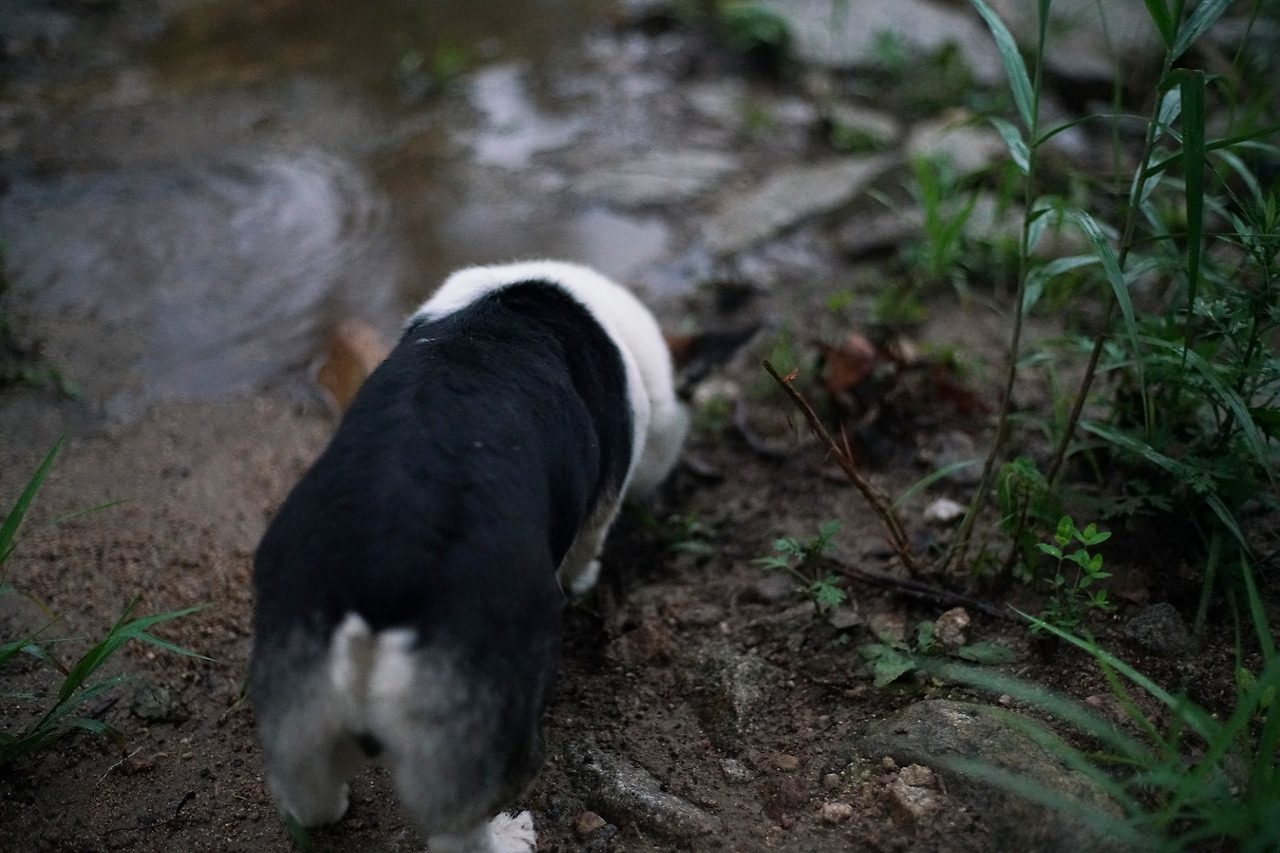코기는 분명히 먼발치에서 날 봤을테지만 모르는 체 땅을 파고 있었다.