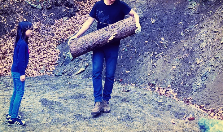 내친김에 더 큰 통나무도 들어 올리자 숲은 우리끼리 열광의 도가니다.