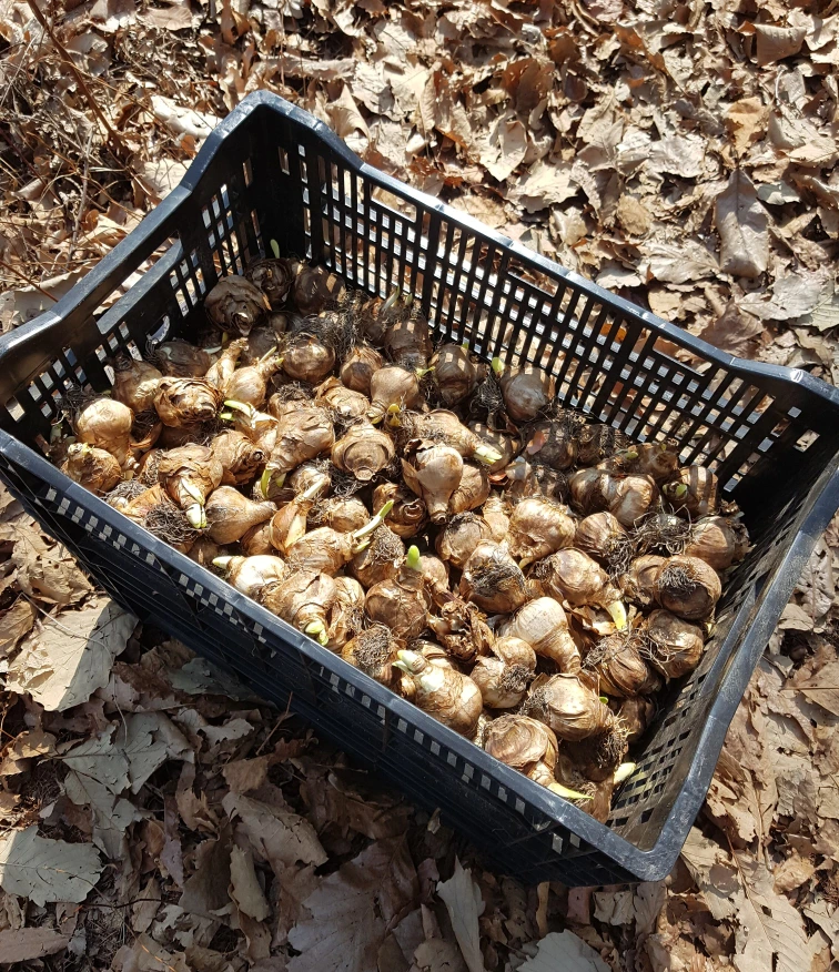 초봄에 꽃을 피우는 구근들은 아슬아슬했지만 결국 다 심었고 남은 초여름 꽃들은 한 곳에 모아 컨테이너 채로 묻어 임시로 식재했다.