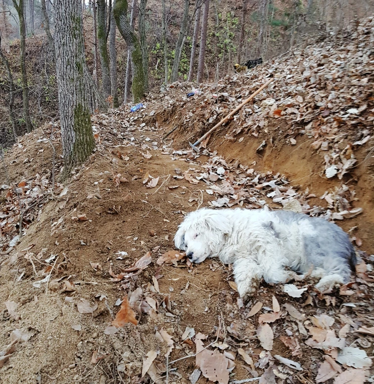 단순히 심는 게 아니라 새로 개간해야 하는 곳의 잡목들을 정리하고 길도 내야 하기 때문에 생각보다 작업이 오래 걸린다.