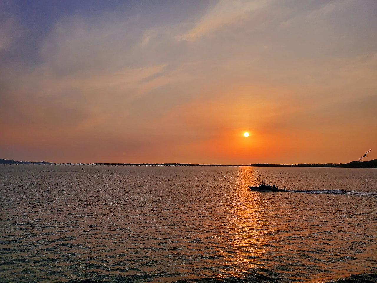 저녁 7시넘어서 출발이라 배위에서 저녁노을을 보며 출발을 하게된다