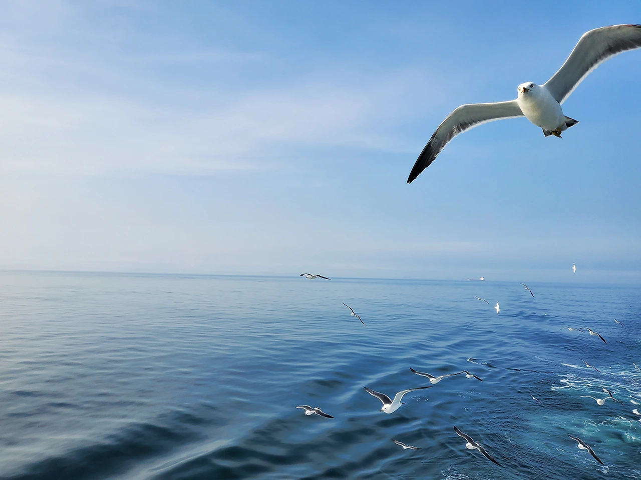 인천항에 가까와지니 갈매기들이 마중나와준다
