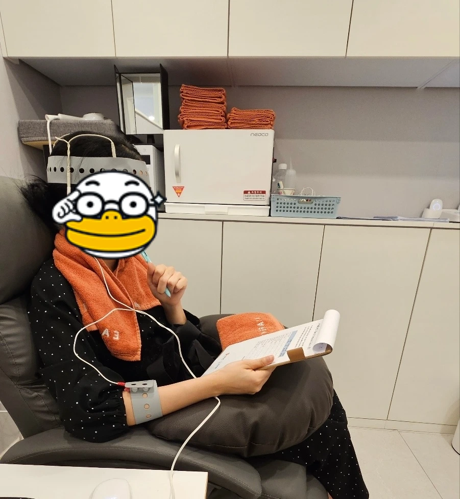 치료동안엔 핸드폰을 해도 되고, 심지어 언니와 수다를 떨어도 된다. 졸지만 않으면 되는 듯. 언니와 시시콜콜한 얘기를 시작하면 그땐 정말 치료 시간이 3분인 것처럼 느껴지더라.