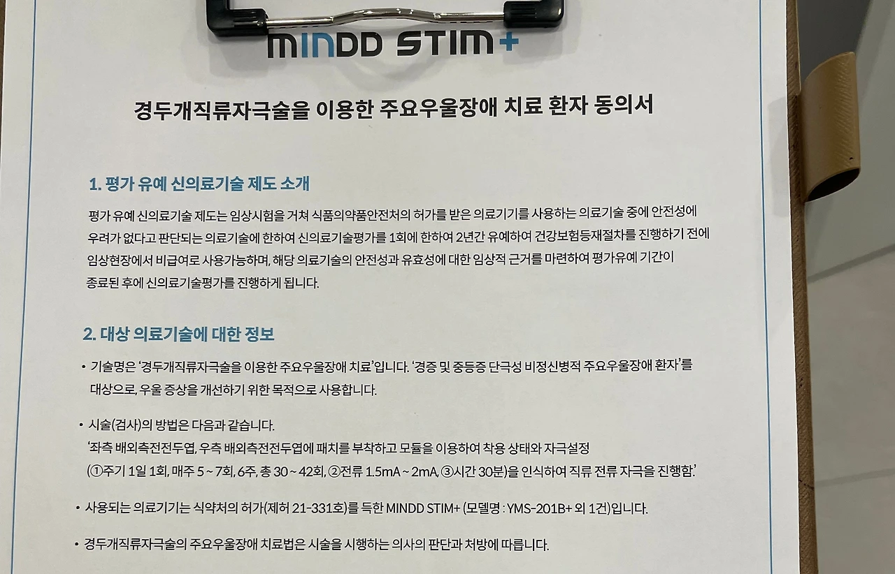 첫 뇌파치료는 역시나 함께 간 언니 덕에 아무런 불안도, 걱정도 없이 받았다. 우선 작은 방으로 안내받은 후, 첫 진료에 앞서 필수적인 동의서를 작성했다. 언제나처럼 3초 잠깐 읽는 척하고 바로 싸인. 그럼에도 혹시나 모르니 사진은 찍어뒀다.(그냥 동의서를 꼼꼼히 읽어...)