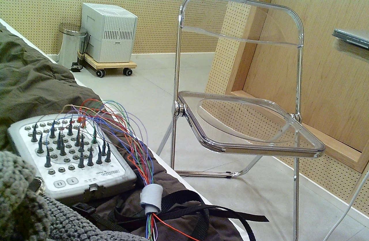 전극들을 주렁주렁 매단 뒤엔 간단한 테스트가 진행됐다. 치아 딱딱 부딪히기, 코 크게 골기, 눈알 돌리기 등을 몇 차례 반복했다. 테스트가 끝나면 그대로 눕고, 눈를 감는다. 이제 본격적인 수면검사의 시작이다.