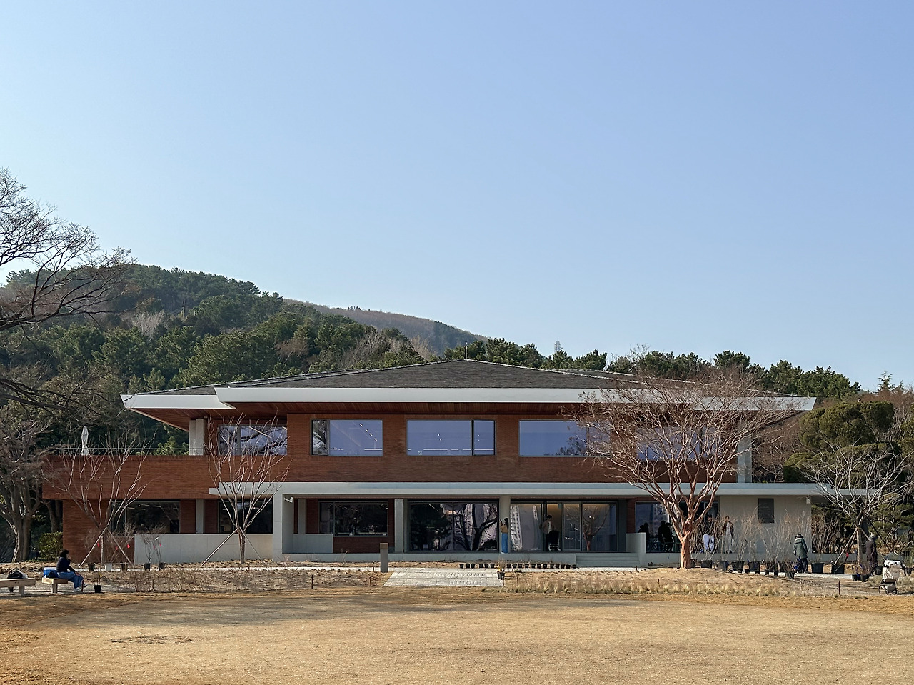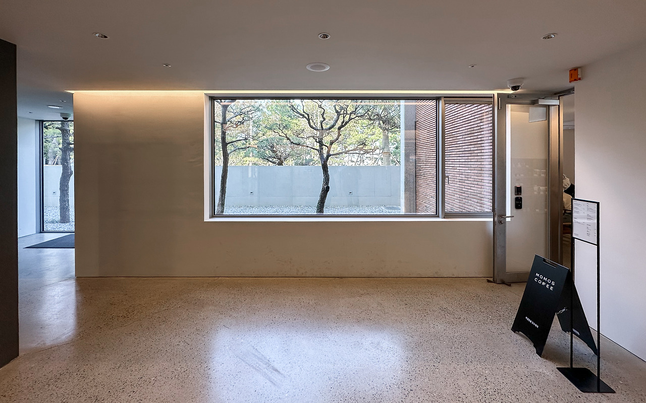 재탄생했다. 2층의 다목적공간은 1층과 다른 재료를 활용해 공간을 구분 짓는다. 바닥은 마루를 활용해 안정적이고 포근한 분위기를 선사한다. 건축과 조화를 이루는 색감의 서가, 테이블, 벤치에는 나무와 패브릭 소재를 활용해 따뜻한 분위기를 더했다. 시원한 통창을 통해 들어오는 풍경과 어우러지며 공간에 차분하면서도 우아한 감각을 부여한다.