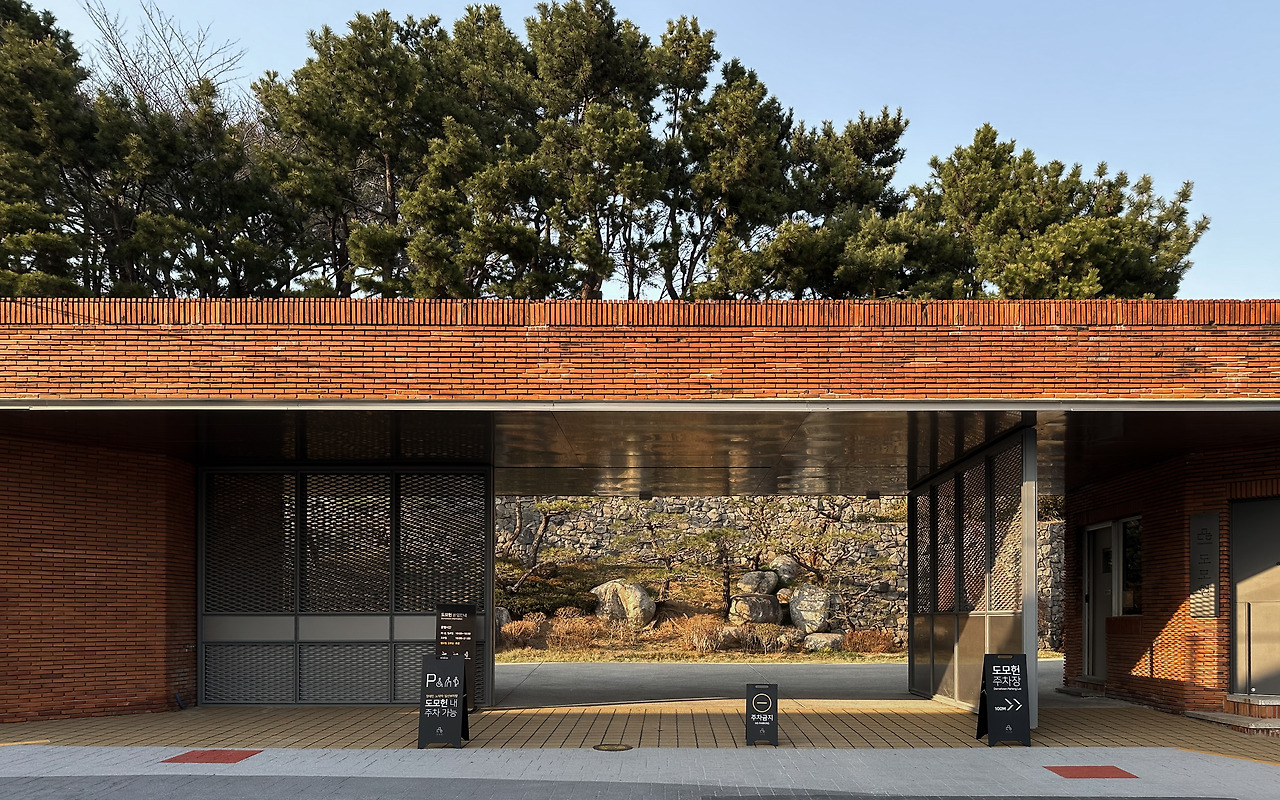그리고 그 변화는 대문을 지나는 입구의 조경부터 시작된다. 자동차가 다니던 아스팔트 포장도로는 도모헌을 찾아오는 사람들이 언덕을 따라 천천히 오르며 자연을 감상하고 바람을 맞이하는 산책로로 조성했다. 길을 따라 오르면 드넓은 잔디마당이 펼쳐진다. 리드미컬한 지형은 기존의 언덕 지형을 활용해 정원을 구성했고 곳곳에는 사람들이 소풍 하듯 거닐 수 있는 쉼터의 역할을 한다.