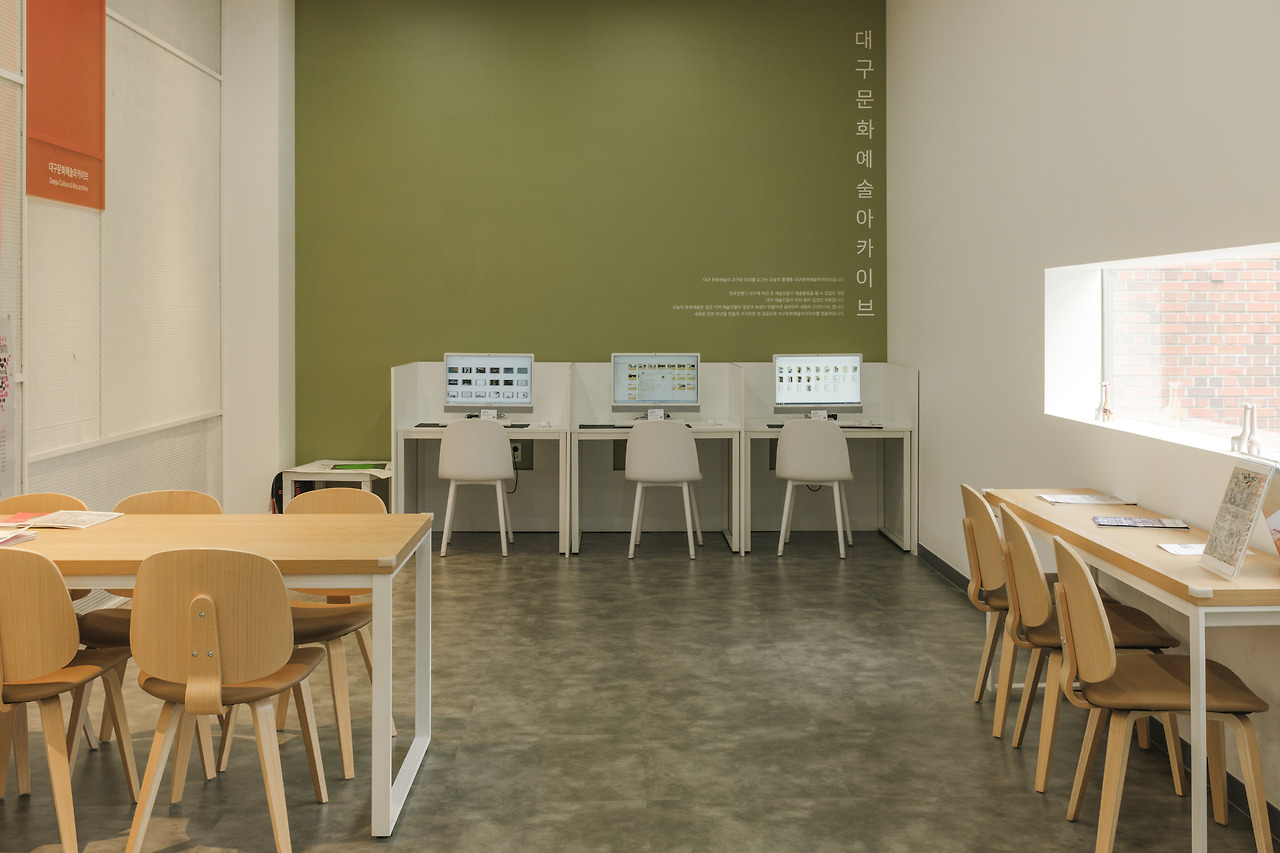 대구예술발전소는 그 취지에 맞게 공간 대부분이 전시실과 예술 실험실, 작가 스튜디오 등 예술 진흥과 신진 작가 양성을 위한 구조로 운영된다. 2, 3층을 따라 이어지는 전시실과 스튜디오, 작업공간들은 여전히 공장 같지만 복도를 걷다 보게 되는 전시 작품들과 미디어 아트 등이 걸음을 멈추게 하고, 우연히 열린 문틈 사이로 작가의 책상과 드로잉, 쌓인 책들을 보게 되었을 때 이곳이 하나의 살아 있는 창작 생태계이자 동시에 예술의 온기를 머금고 있음을 보여준다.