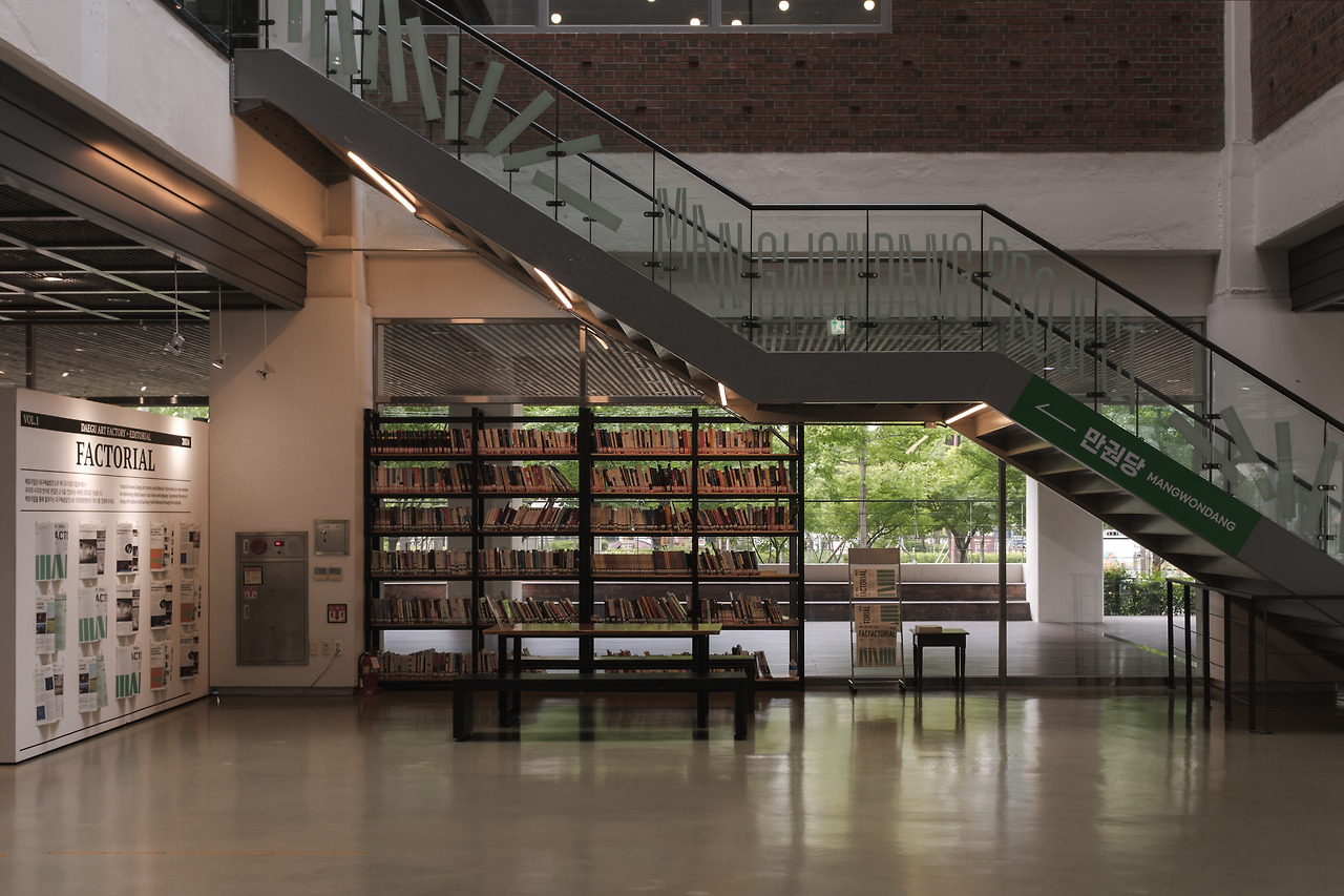 1층 로비에 들어서면 ‘만권당’이라는 북카페가 있다. 고려 충선왕이 세운 독서당의 이름에서 따온 이곳은 예술가와 시민이 만나는 공공의 플랫폼이자 문화적 흐름을 담는 작은 거점이다. 로비의 벽면을 가득 채운 책장이 햇살에 따라 색을 달리하며 책 너머로 투영된 빛의 결은 마치 오래된 필름처럼 연상케 한다.