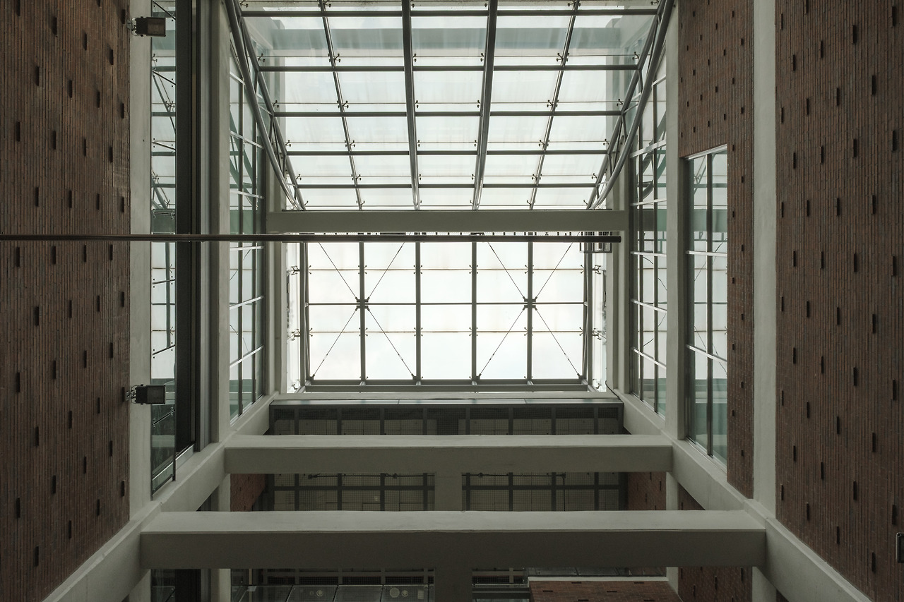 건물은 공장의 형태를 유지한 채 기능만 바꾸었다. 철제 트러스와 노출 콘크리트, 붉은 벽돌이 드러난 입면을 통해 과거를 고스란히 품고 있다. 내부에 들어서면 건물의 중심에 유리 천장 아래 중정이 자리한다. 천장에서 쏟아지는 자연광은 마치 시간의 틈처럼 내부를 가로지르고 계단을 오르며 뒤를 돌아보면 브리지를 따라 뻥 뚫린 시야 너머로 공간의 수직성이 한눈에 펼쳐진다. 그 자리에서 바라보는 건물의 형상은 단단하면서도 열려 있고 오래된 구조가 어떻게 현재의 감각으로 연결될 수 있는지 간접적으로 보여준다.