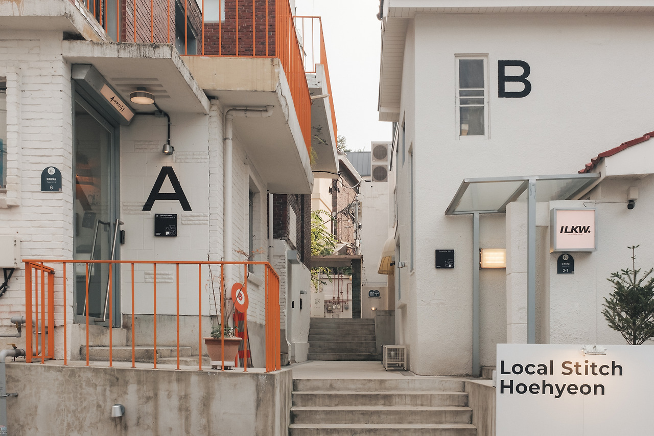 좁은 골목길 안으로 ‘로컬스티치 회현’이라는 레터링이 벽화처럼 그려진 외벽이 시선을 이끈다. 로컬스티치 회현은 한 채의 건물이 아닌 동네의 흩어져 있던 6개의 소규모 건물을 리노베이션해 하나의 느슨한 클러스터로 엮어낸 도시형 재생 프로젝트다. 각각의 건물은 원래 숙박, 상업, 주거 등 제각각의 용도로 쓰이던 곳이었고 리모델링을 거치며 하나의 복합 프로그램으로 연결되었다. 철거와 대체가 아닌 보존과 덧입힘을 선택한 로컬스티치의 방식은 도시의 물리적 구조를 해체하지 않으면서도 그 흐름과 관계를 새롭게 재편하는 실천이다.