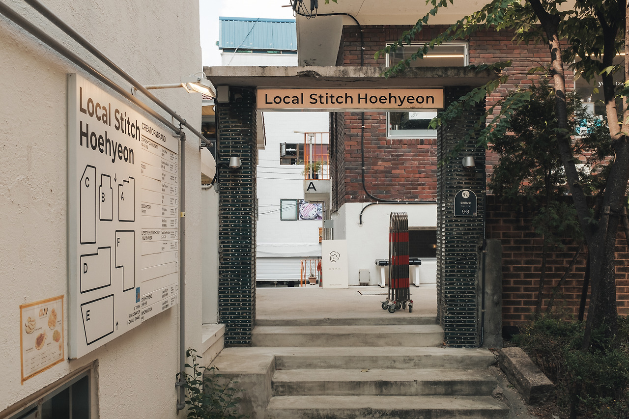 건축적 접근은 절제되어 있지만 그 의도는 명확하다. 다닥다닥 붙어 있던 건물은 사이사이로 불법건축물들이 사잇길을 가리고 있었다. 이에 불필요한 요소들을 제거하며 건물 사이의 십자형 길을 회복하고 외벽은 기존 질감을 살려 유지하는 방안으로 타일과 창, 외부 계단, 철제 난간 등은 가능하면 보존했다. 그렇게 드러난 작은 골목길은 공용공간이 되고 건물에 입주한 스몰브랜드와 크리에이터들의 다양한 개성이 흘러 들어왔다. 장소가 가진 과거를 숨기기보다 드러낸 상태에서 지금의 도시 리듬을 끼워 넣는 태도는 도시를 ‘소유’가 아닌 ‘사용’의 장소로 인식하는 로컬스티치의 관점을 상징적으로 보여준다.