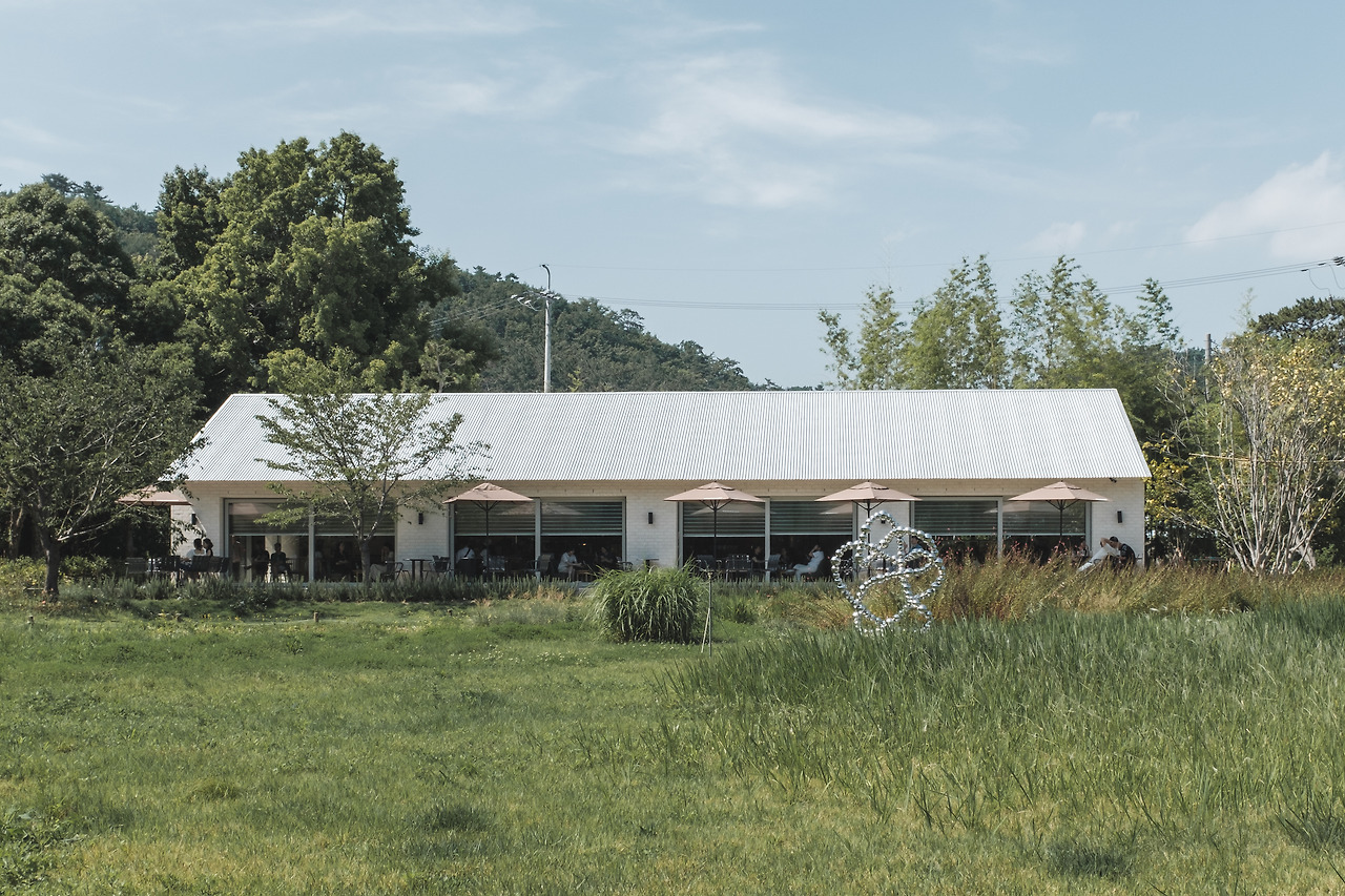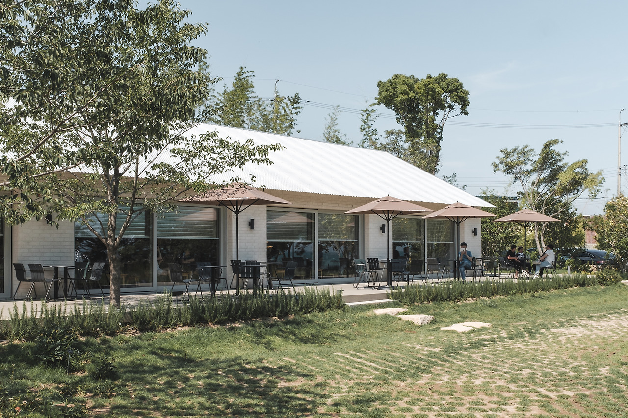 건물은 두 개의 매스(mass)로 구성되어 있으며, 주동은 경사지붕의 박공 형태와 상아색 벽돌 외피를 통해 전통적 건축 어휘를 현대적으로 해석하였다. 외피에는 다양한 크기의 창호를 분산 배치하여 내부 공간의 개방성과 자연 채광 유입을 극대화하였으며, 실내 가구 또한 조망 방향을 고려해 배치되어 외부 풍경과의 시각적 연속성을 유도한다. 이러한 설계를 통해 사용자는 내부에 머무르는 동안 자연 채광, 바람, 조경 요소를 유기적으로 경험하게 된다. 부동은 직원 전용 공간 및 위생시설로 구성된 보조 매스로, 주동과는 달리 대부분의 입면이 폐쇄되어 기능적 프라이버시를 확보하며, 외관적으로는 대비 효과를 형성한다.