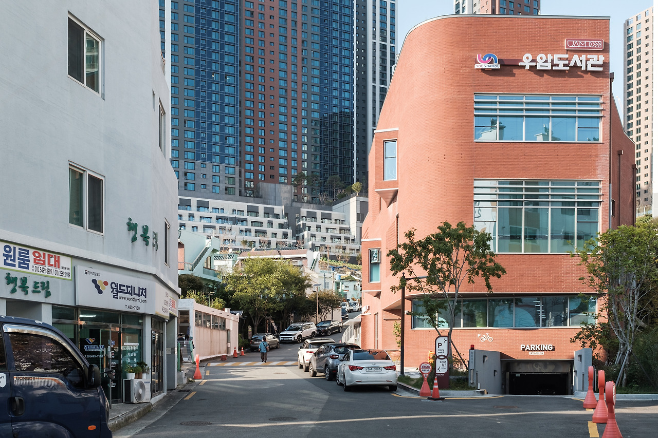 최근 이 동네엔 새로운 변화의 바람이 불고 있다. 주택 재개발과 도시 환경 개선 사업이 한창이다. 좁은 골목 사이엔 낡은 건물과 오래된 주택들이 빽빽이 들어서 있고, 가장 높은 지대에는 고층 아파트가 완공되어 가는 모습도 보인다. 그런 골목 어귀. 무심코 바라본 풍경 속에서 붉은 벽돌 건물 하나가 눈에 들어왔다. 바로, 우암도서관이었다.