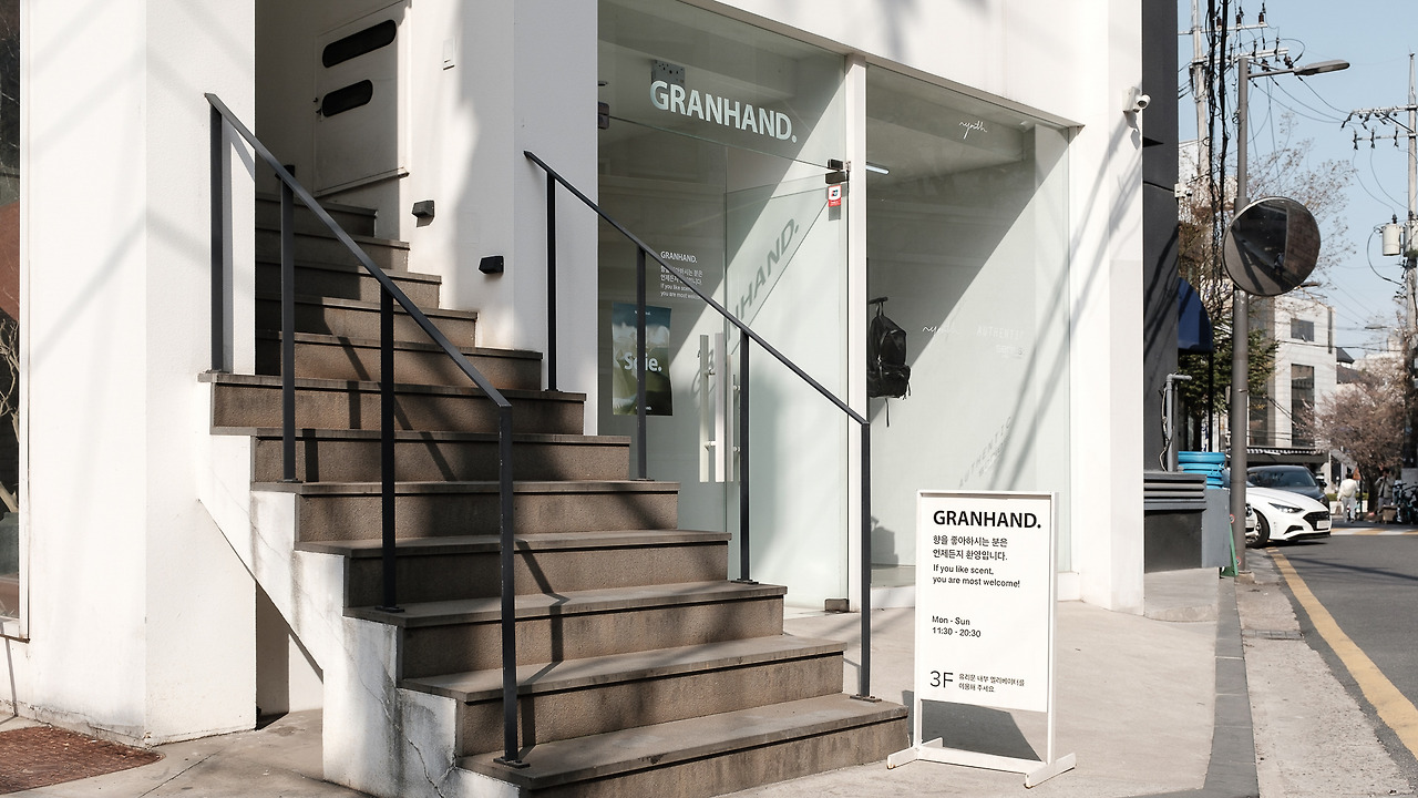 가장 한국적인 공간인 북촌에서 ‘향수’라는 한국적인 느낌과는 낯선 제품을 선보이는 그랑핸드 1호점 북촌점은 미로 같은 골목길 사이 전통적인 한옥의 아름다움이 느껴지는 한옥마을 속 비밀공간처럼 자리잡고 있다.