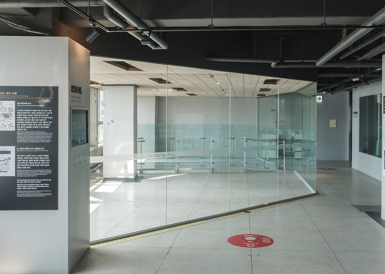 그 현장의 모습을 10층 헬기탄흔 원형보존 공간으로 보존 처리하여 유리 스카이 워크를 통해 탄흔의 흔적과 위치를 가까에서 관람할 수 있으며 9층으로 이어지는 공간까지 왜곡된 역사, 뉴스 등 5.18 민주화운동의 가치 평가 등에 관한 내용들을 자연스럽게 발걸음을 이끌며 관람한다.