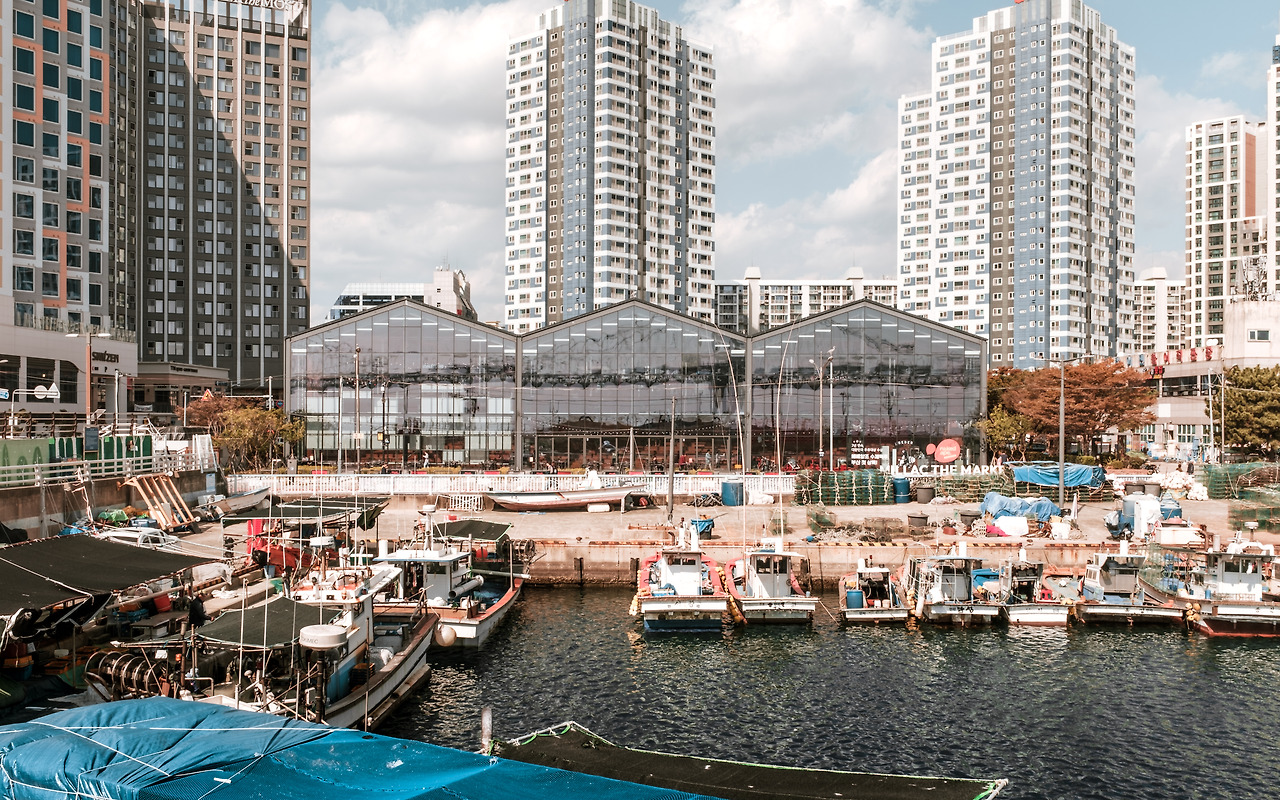 수직적인 형태의 건물 사이, 수평적인 형태로 붉은 벽돌창고의 모습으로 들어선 이 공간은 ‘마켓’의 테마로 특색 있는 콘텐츠로 채워진 문화 공간으로 마치 뉴욕의 ‘첼시마켓’을 떠오르게 한다. 창고가 가지는 단순한 형태에 부합하고 물성이 그대로 드러나는 적벽돌은 남측의 바다를 연결하는 커튼월과 달리 서측으로 긴 파사드는 촘촘한 열주로 계획되어 또 다른 도시의 풍경을 연출한다.