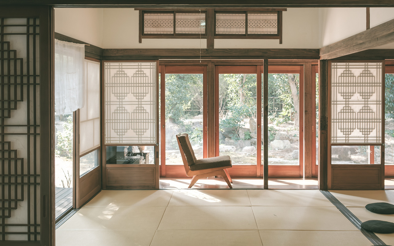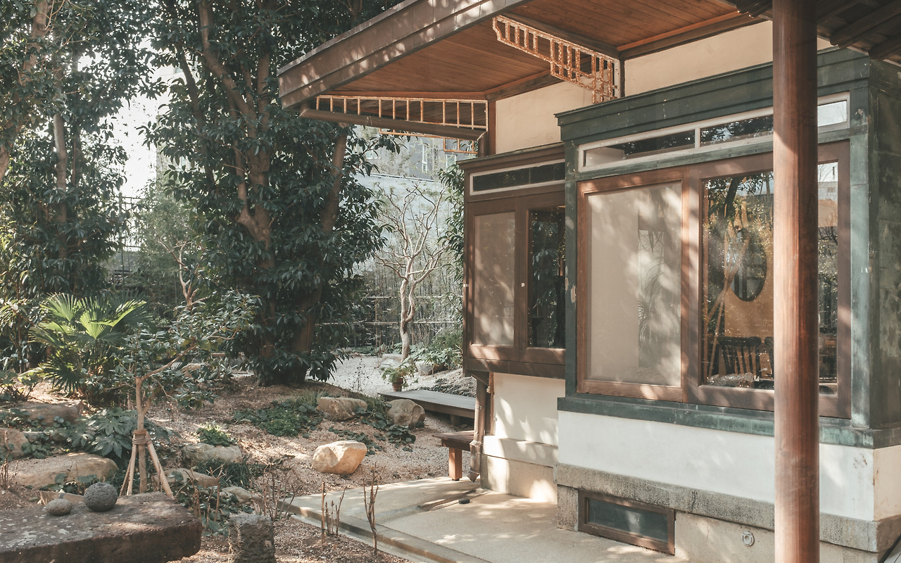 부산 동구 초량동에 위치한 오초량은 부산에 방문하게 되면 꼭 방문해 보고 싶은 곳이었다. 근대문화유산 등록문화재 제349호로 일본식 가옥, 적의재산이라는 직접적인 표현 ‘적산가옥’이라고도 불리는 이곳은 목조주택으로 일본식 평기와 지붕과 건물의 내부 공간, 정원 구성 등이 일본식 가옥의 원형이 잘 보존되고 있는 곳이기도 하다. 푸른 정원과 연못을 품은 오래된 주택 외관과, 삼면이 고층 아파트로 둘러선 형국에 홀로 시간이 멈춘 오초량은 한 폭의 그림과도 같았다. 입구에 들어선 순간, 오래된 집을 들어선 것처럼 고요함이 가득했다.
