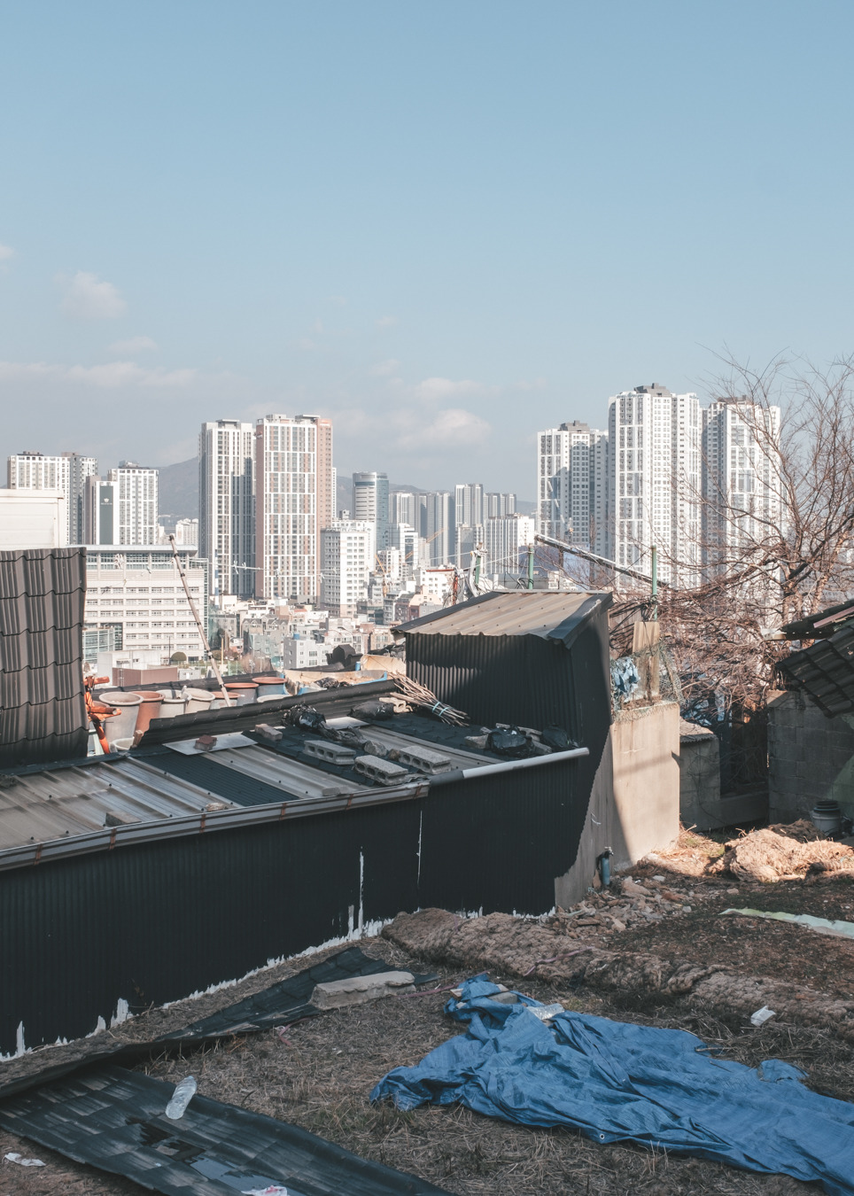 높은 언덕에서 바라본 부산항의 모습은 수평선을 따라 끝없이 펼쳐지는 바다의 모습과는 또 다른 풍경을 선사한다. 저 멀리 보이는 부산항 앞으로 불쑥불쑥 튀어나온 산자락은 겹겹이 층을 이루고 있고 그 위로 서 있는 집들은 산자락의 맥락에 맞춰 무질서하지만 하나의 덩어리처럼 보이기도 한다. 바다와 산을 함께 품은 독특한 지형을 갖춘 부산. 그중 부산 산동네의 독특한 경관은 우리나라에서도 유일무이한 공간이기도 하다. 그리고 그곳에는 부산과 부산 사람들의 애환과 흔적이 고스란히 남아있다.