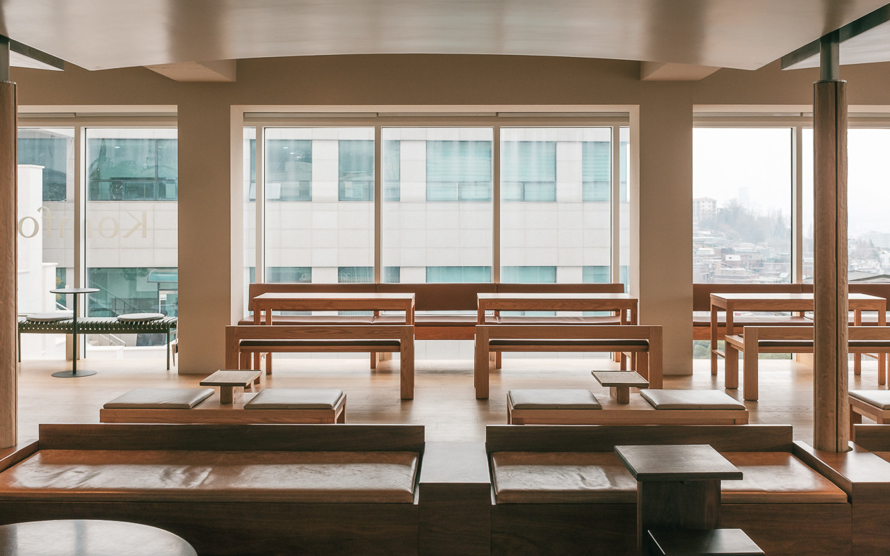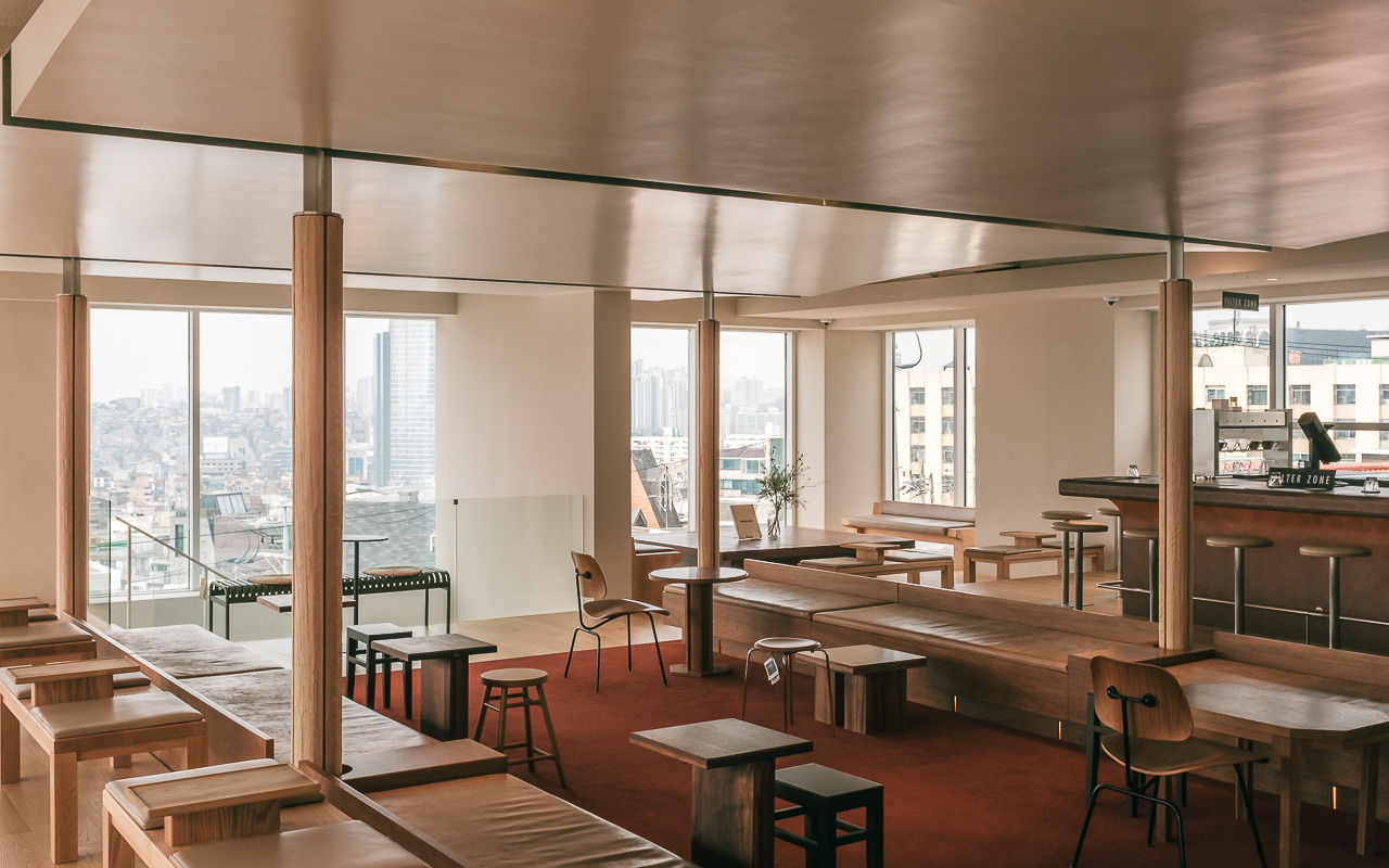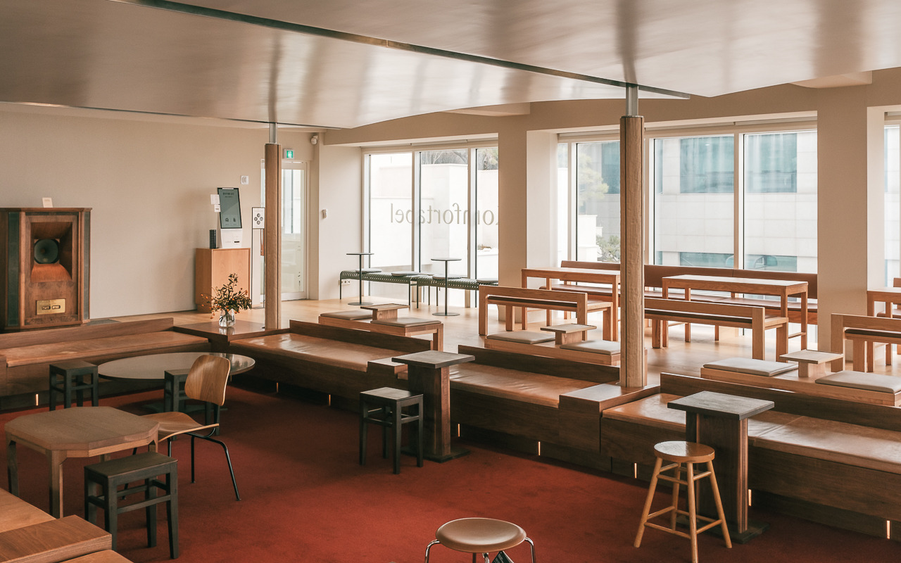 따뜻하고 안락한 느낌의 우드 인테리어와 가구들은 1호점 안국점을 그대로 옮겨온 듯한 분위기를 제공하지만 기존에 그랑핸드 남산점이 위치했던 4층 자리에 자리 잡아 그랑핸드 남산점의 시그니처였던 파노라마 뷰를 품어 훨씬 더 넓은 서울의 풍경과 계절마다 바뀌는 햇살을 모두 담을 수 있는 장소로 또 다른 콤포타블의 공간 경험을 할 수 있다. 콤포타블만의 스페셜티 커피와 정성스럽게 준비한 디저트들과 함께 커피와 향이라는 경험의 확장을 만나볼 수 있다.