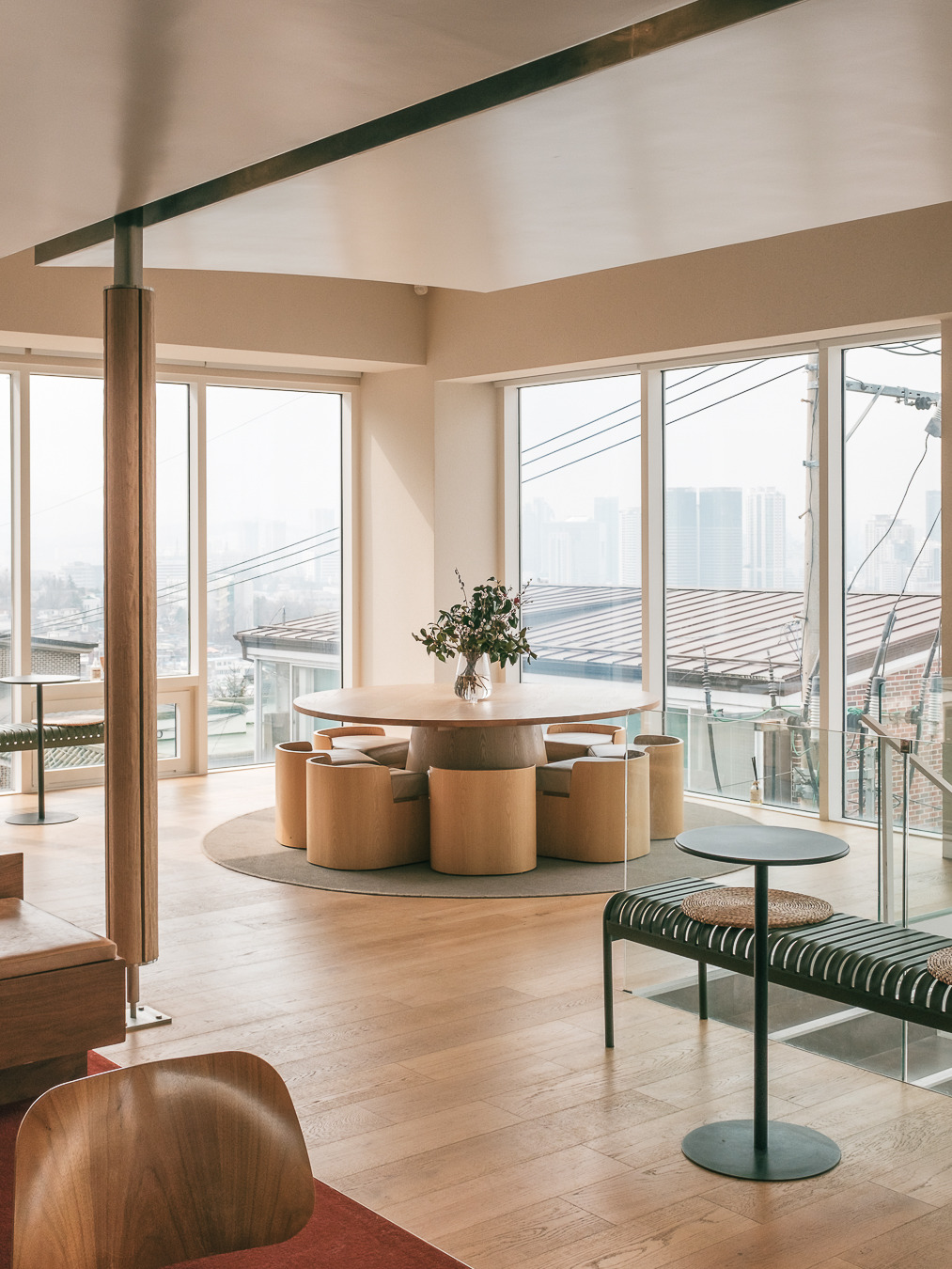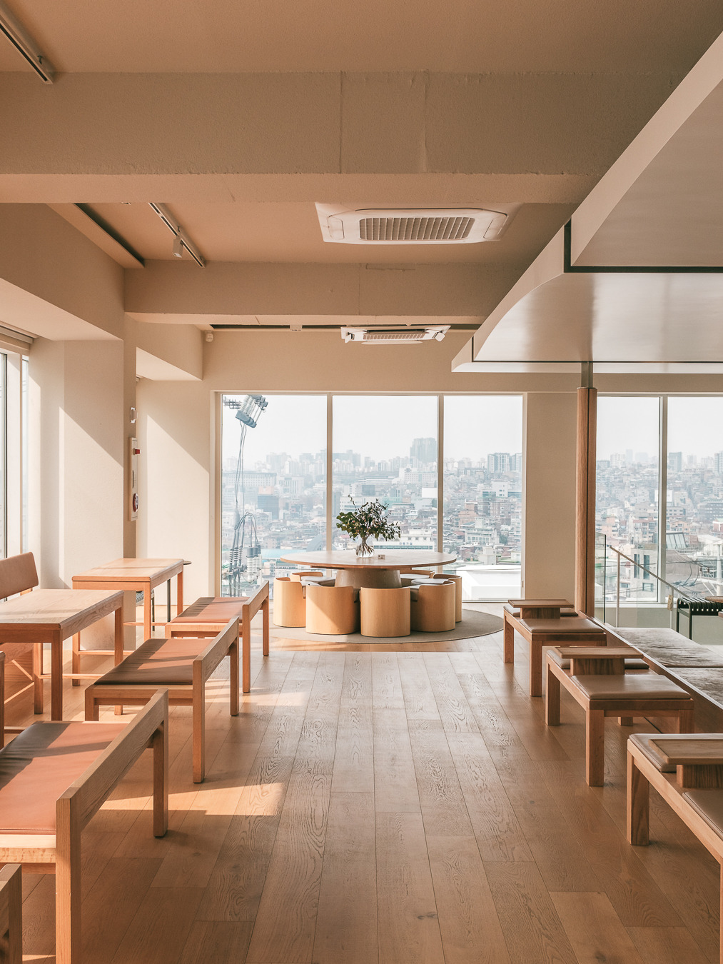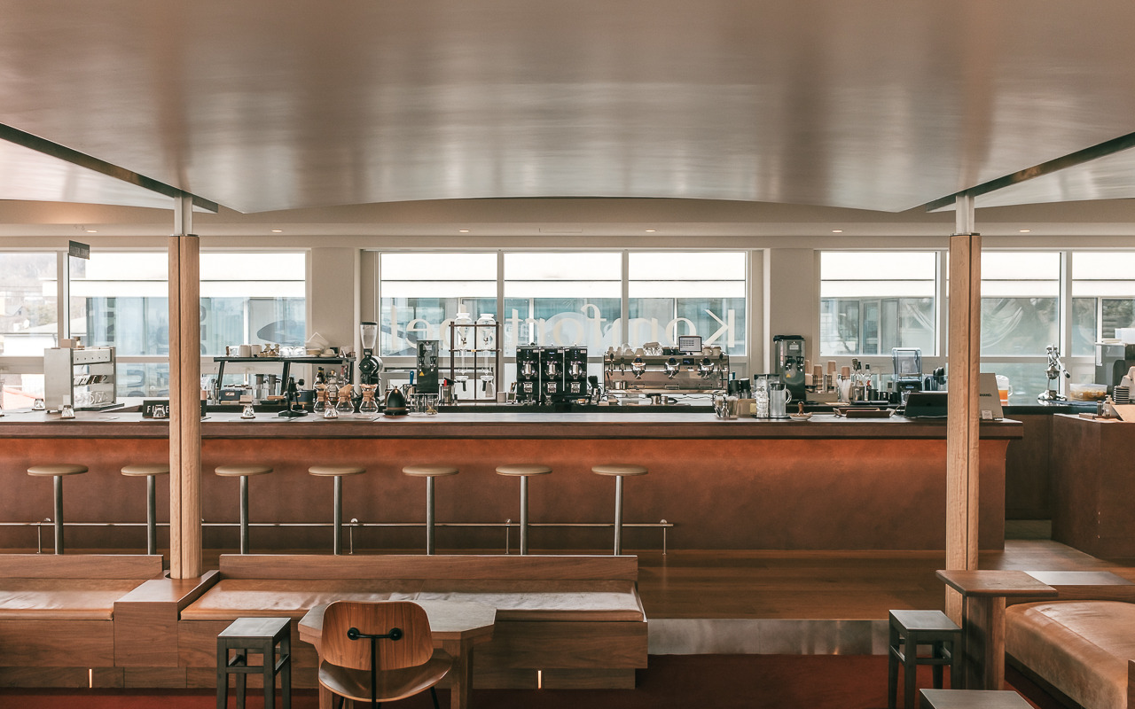 따뜻하고 안락한 느낌의 우드 인테리어와 가구들은 1호점 안국점을 그대로 옮겨온 듯한 분위기를 제공하지만 기존에 그랑핸드 남산점이 위치했던 4층 자리에 자리 잡아 그랑핸드 남산점의 시그니처였던 파노라마 뷰를 품어 훨씬 더 넓은 서울의 풍경과 계절마다 바뀌는 햇살을 모두 담을 수 있는 장소로 또 다른 콤포타블의 공간 경험을 할 수 있다. 콤포타블만의 스페셜티 커피와 정성스럽게 준비한 디저트들과 함께 커피와 향이라는 경험의 확장을 만나볼 수 있다.