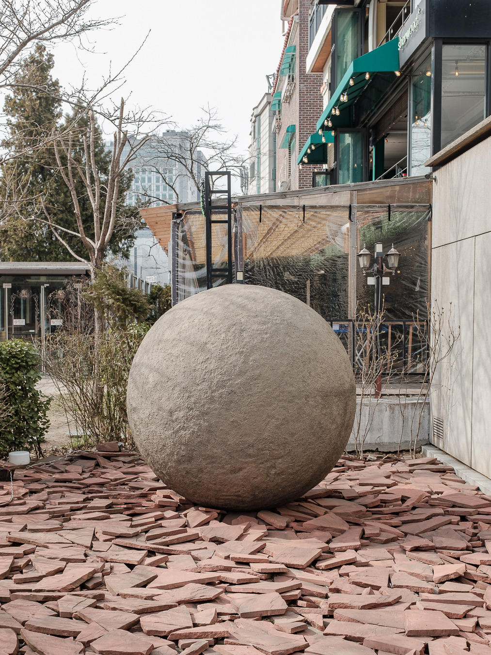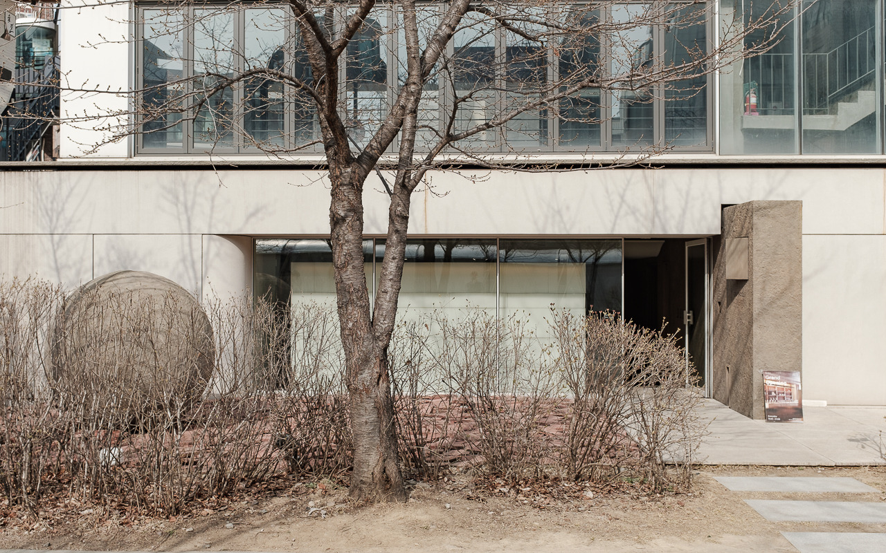 서울의 도심 중 특히 홍대 인근은 끊임없이 유기적으로 움직임과 동시에 사람들의 강한 개성과 다양성이 표출되는 장소다. 그러나, 이곳에는 정반대의 공간도 존재한다. 선형으로 철길의 흔적을 따라 길게 이어지는 경의선 숲길은 복잡한 홍대 도심 속을 가로지른다. 그리고 어지러운 도심을 벗어나 이곳으로 모이는 사람들은 숲길을 따라 책장을 넘기듯 천천히 걸으며 생각을, 휴식을 또 옆 사람과 마주 보며 대화를 즐기며 일상을 느리게 보낸다. 복잡함과 정적이 혼합된 이 장소는 어쩌면 그랑핸드에 굉장히 매력적으로 다가왔을지 모른다.