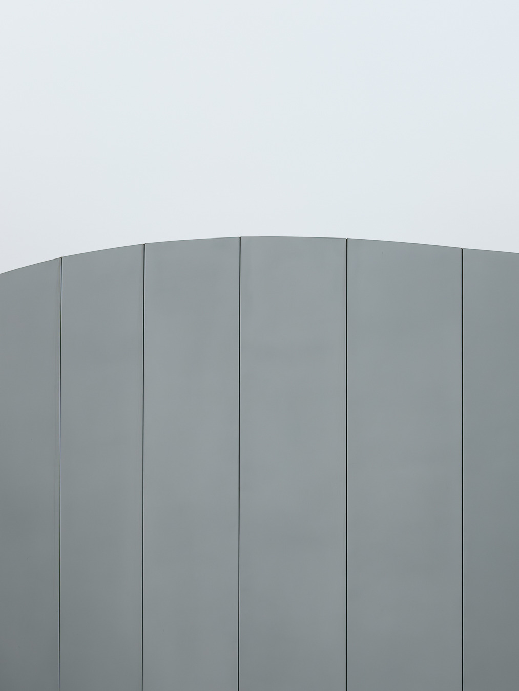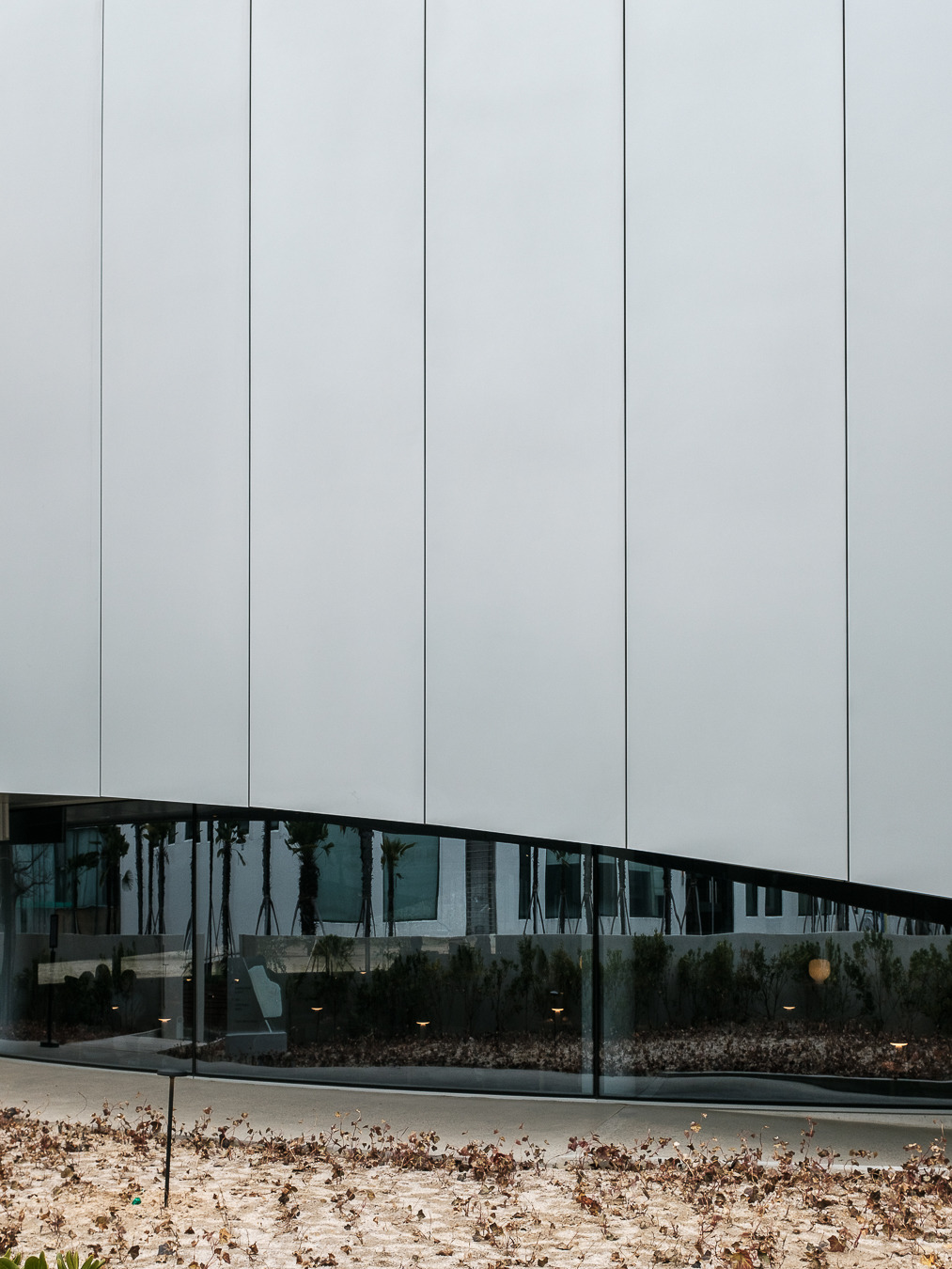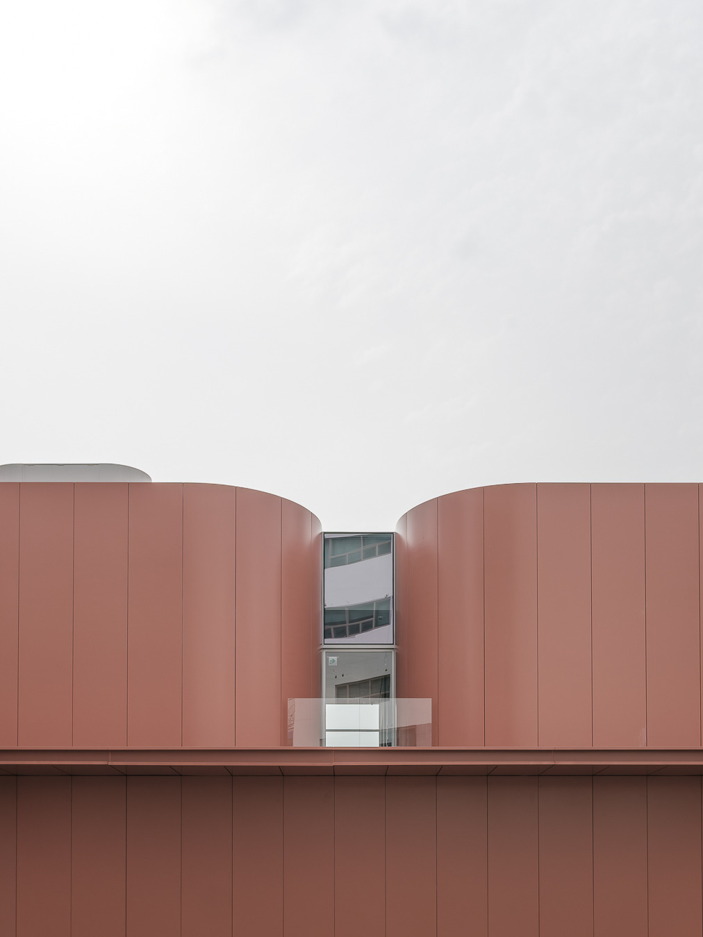 콘크리트 담장 너머 보이는 수안커피 플래그십스토어는 건물 주변을 맴돌지 않으면 어디가 입구인지 찾기도 쉽지 않다. 멀리 떨어져 보면 미술관 혹은 공연장 같아 보이기도 한다. 처음 보면 무엇을 하는 공간인지 용도를 알 수 없어도 보이는 외관의 형태는 인지할 수 있다. 땅에 내려앉은 건축은 뫼비우스 띠처럼 원형의 곡선으로 땅에 길게 내려앉아 있다. 대지 안으로 들어가기 전까지 창과 창호 같은 건축 요소를 찾아볼 수 없다. 이러한 건축 요소를 숨김으로써 수안커피의 건축은 방문객들에게 상상력을 불어넣는다.