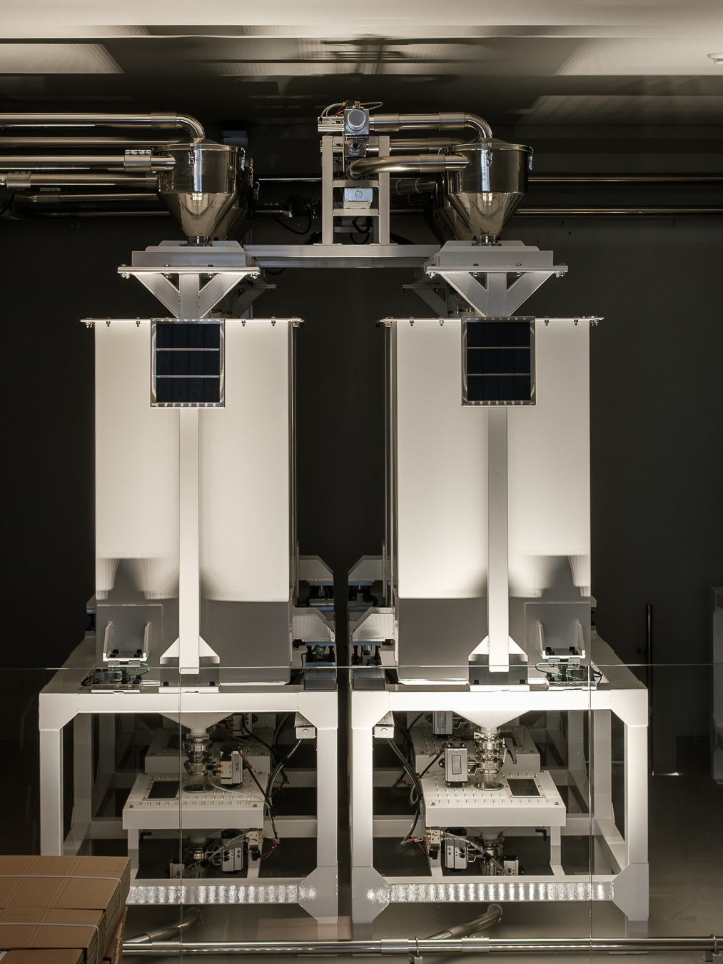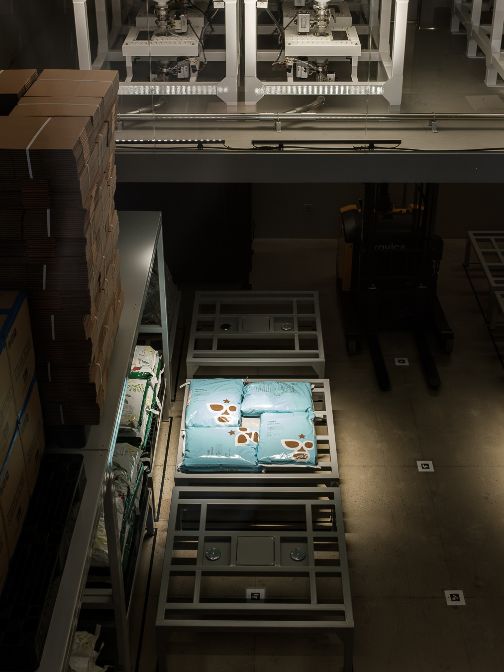 계단을 올라와 마주하는 유리창이 야외의 풍경을 들여오고, 뒤를 돌아서면 수안커피가 오랜 기간 준비한 로스팅하우스의 생산 환경을 볼 수 있다. 2024년 2월부터 운영하고 있는 로스팅하우스는 제품 생산 시스템을 한 단계 발전 시키기 위해 생산 과정에 자동화 시스템을 도입했다. 인간이 장기간 수행하기 어려운 하중, 분진, 반복 작업 등을 기계가 대신하게 되고, 인간이 집중해야 할 품질 관리나 제품 개발과 같은 가치가 높은 업무에 전념할 수 있기 위함이다.