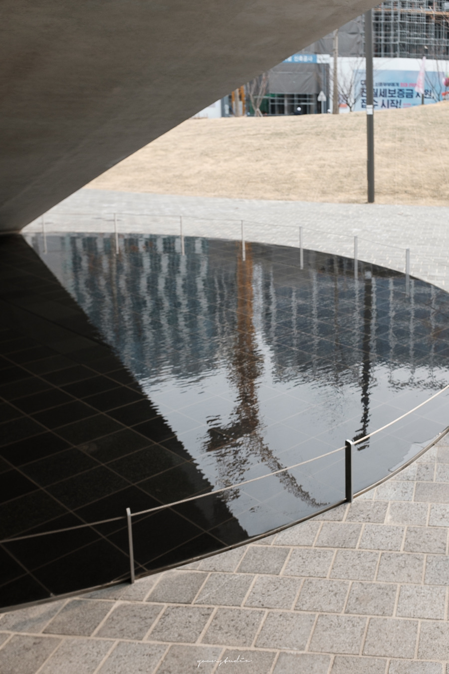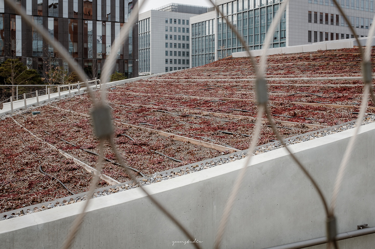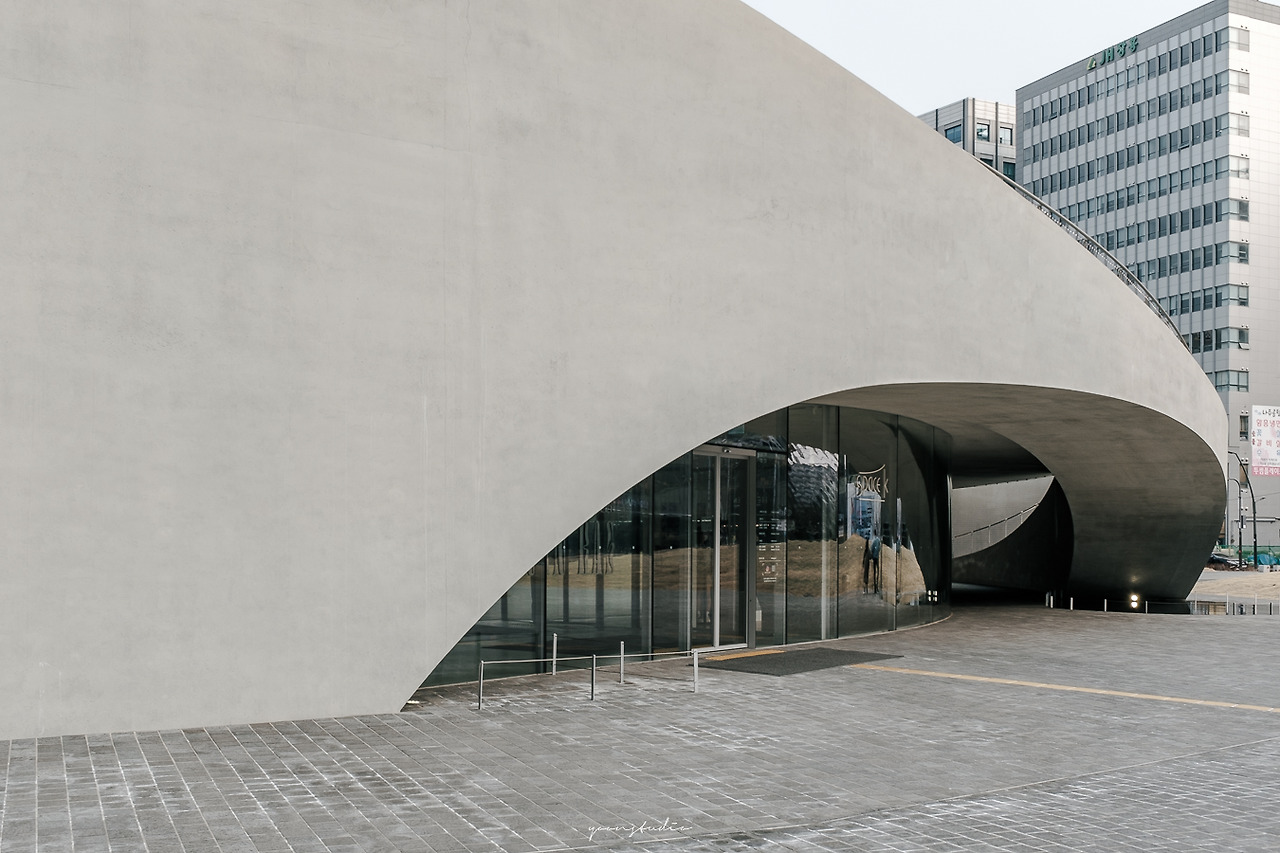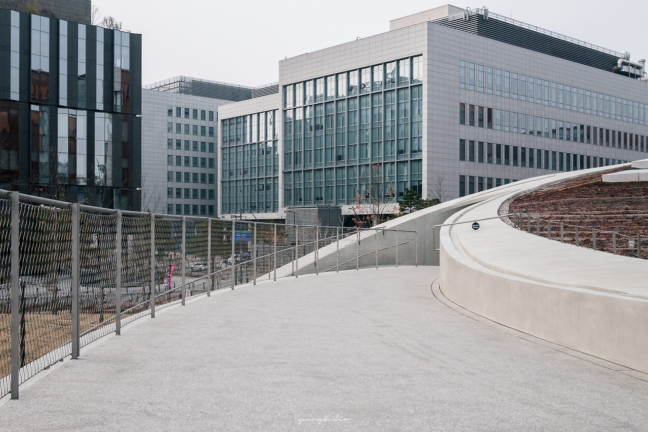 고층 건물이 가득한 산업단지 내에 자리 잡은 낮은 콘크리트 건물은 주변 콘테스트와 비교했을 때, 잔잔한 느낌과 접근성이 용이한 느낌을 준다.