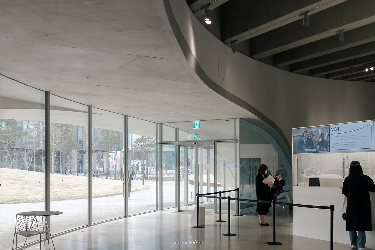 외부에서 바라보았을 때 보이는 건물의 레벨은 내부의 규모를 어느 정도 작게 생각할 수밖에 없었다. 그럼에도 불구하고 3.3m의 낮지 않은 천정과 곡선에 따라 자연스럽게 점진적으로 높아져가는 천정은 다양한 연출과 변화무쌍한 전시의 구성을 요구하는 전시의 특성을 완만하게 해주려고 하는 모습이 돋보인다. 또한, 앞서 말했듯 전시 가벽을 중심으로 이루어지는 전시가 주를 이루다 보니 자연스러운 조명의 배치를 요구하게 될 텐데, 천정보를 이루는 모듈을 기준으로 자유롭게 배치를 가능하게 하는 섬세함도 놓치지 않음을 발견하게 된다. 모든 건축이 그렇다는 건 아니지만 전시공간에서 이런 디테일을 찾기는 정말 힘든 컨디션이다.