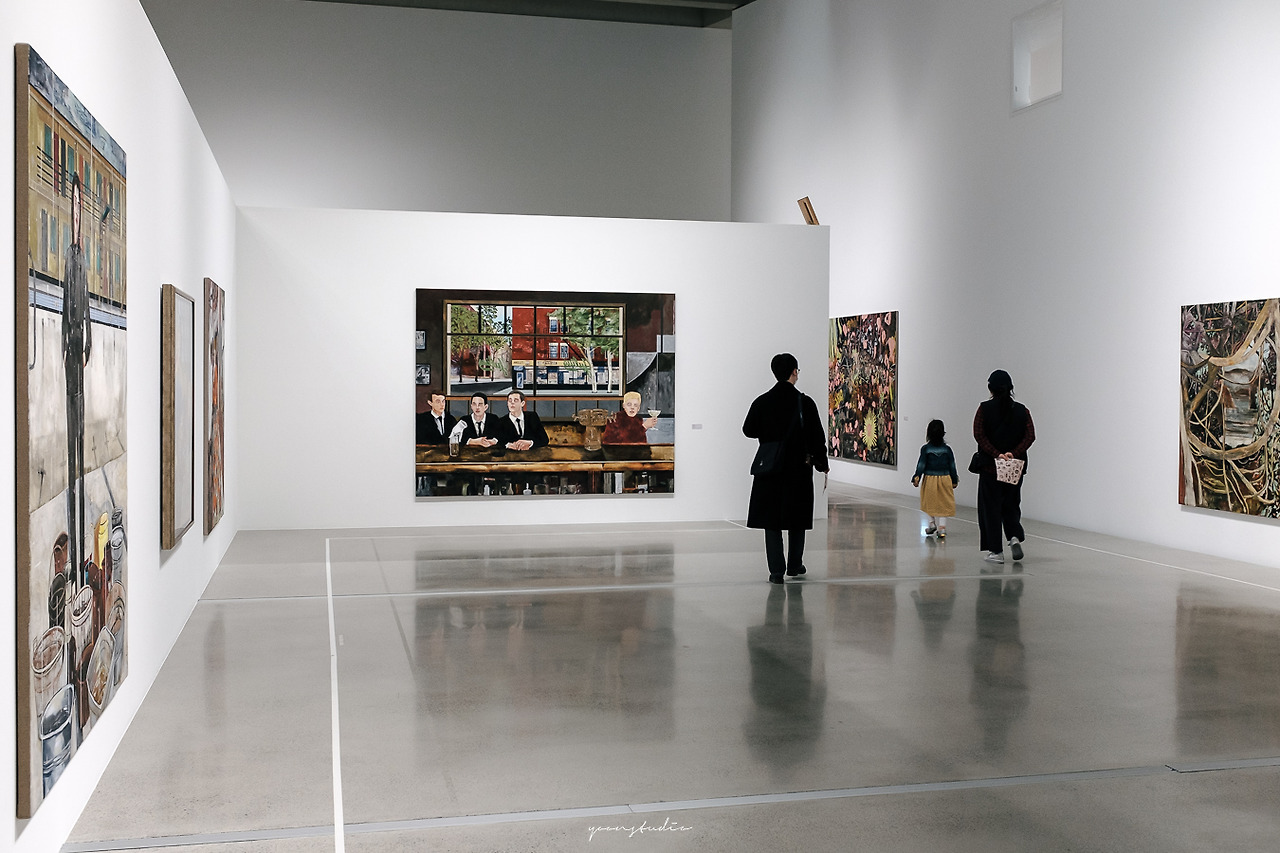 로비를 지나 내부를 들어오면 여기가 전시관이라고?라고 할 정도로 간결하게 구성이 되어있다. 마곡 산업단지의 특성을 결합하여 기술을 융합한 현대미술의 경향을 많이 보여주는 전시를 많이 구성하는 게 이 공간이 특징이라는데 그래서 그런지 다양한 변화가 가능하게끔 비어져 있었다. 전시라는 분야 자체가 다양한 예술영역을 넘나들고 분야에 따라 조도의 영향을 크게 받게 되는 영역이다. 하지만 그런 영역을 자 율롭 게 구성할 수 있게 하는 가벽을 중심으로 하는 공간과 3개의 천장에서 들어오는 자연광은 어떤 전시영역이든 크게 신경을 쓰지 않을 정도로 내부를 비춘다.(물론 미디어 중심은 대책이 필요하겠지만)