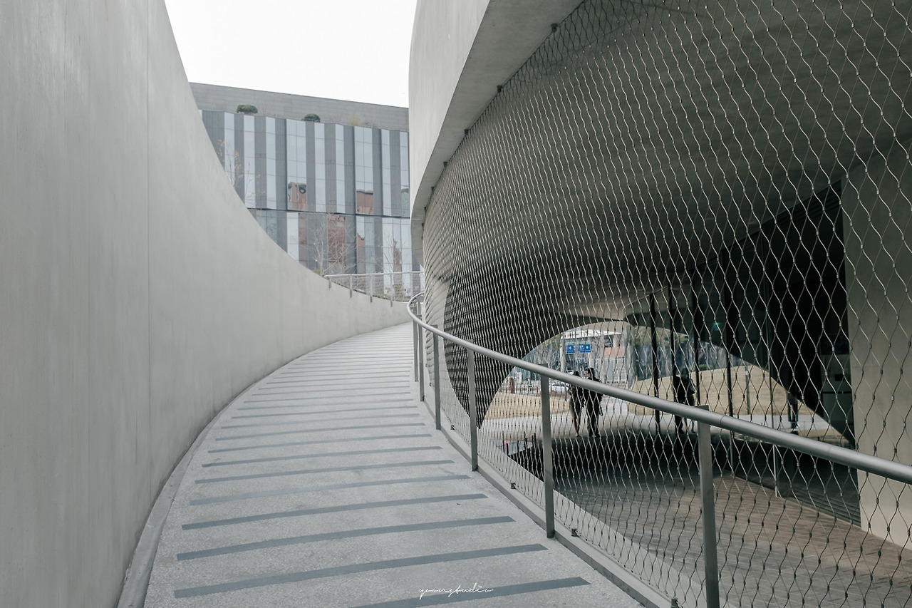 건물의 옥상에 들어서긴 했지만 옥상과 연결되는 계단과 경사로에서 내가 지금 미술관 건물에 있다는 느낌보다는 공원의 일부에서 조금 더 높은 경사로에 올라와 있는 듯한 느낌을 받게 된다. 미술관을 둘러싸고 있는 공원에서 자연스럽게 미술관으로 들어오게 되고, 미술관에 호기심을 갖게 한다.