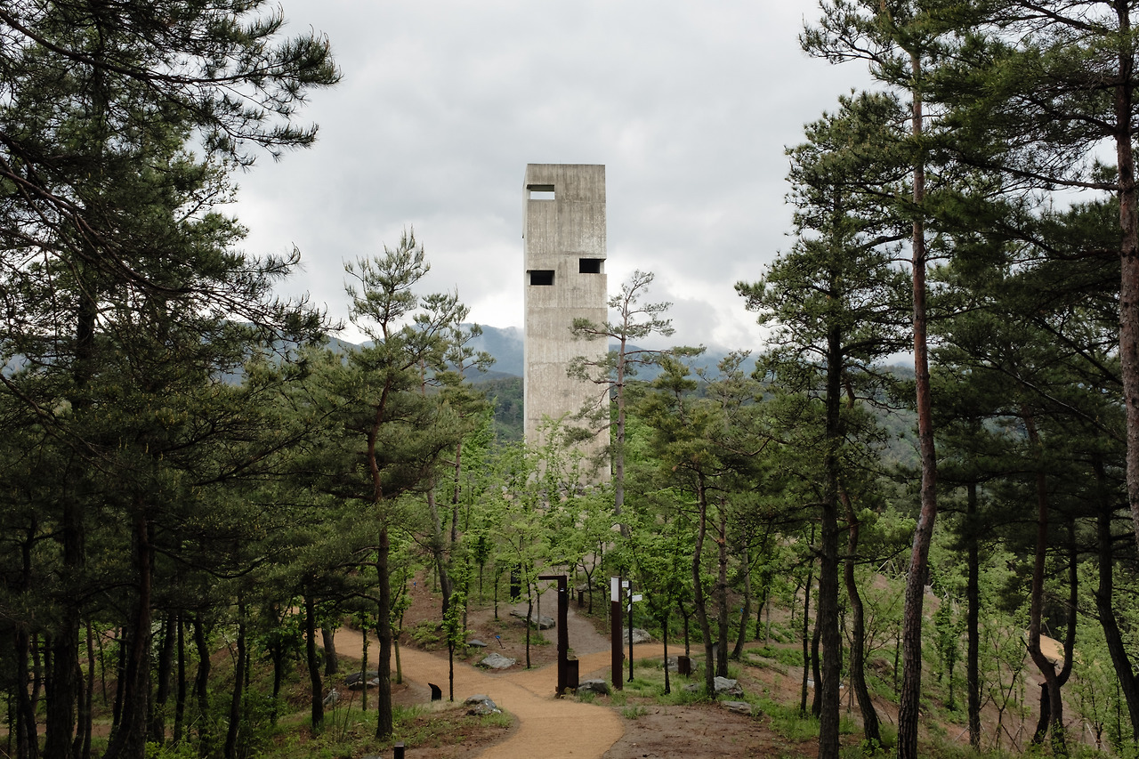 기울어진 20.5m의 탑 '소대'는 알바로 시자의 요청으로 소요헌과 함께 구상한 전망대다. 새둥지 소대라고 부르기도 한 전망대는 어두운 조명 아래 계단을 오르며 사유원의 멀고 가까운 전망을 동서남북으로 모두 품어 조망할 수 있다.