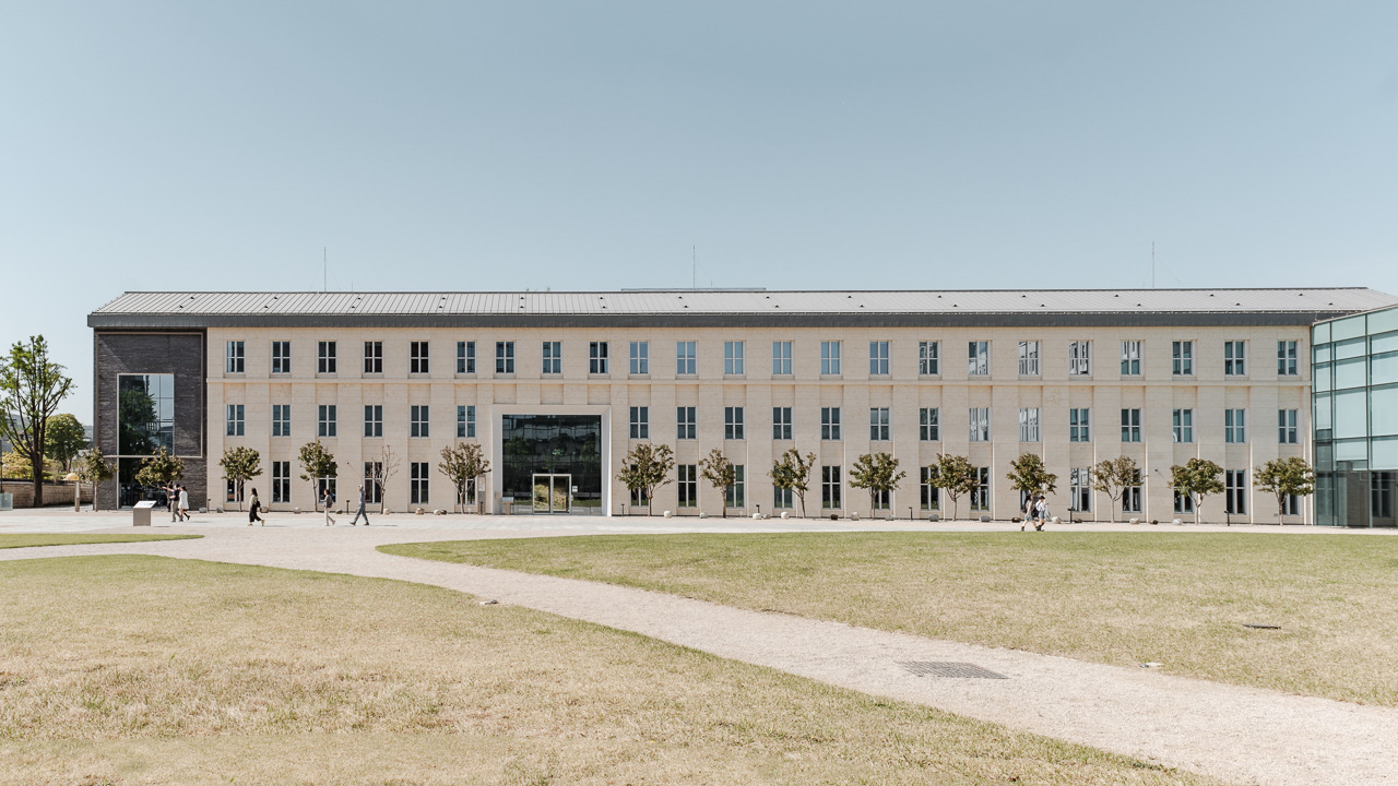 박물관의 본관은 장소의 전체적인 분위기를 좌우하는 요소이기도 하다. 기존 입면이 가진 분위기를 간직한 채, 깔끔하게 단정된 건물은 샌드 느낌의 베이지 대리석이 한 판의 크기로 이어졌고, 줄눈을 최소화하여 재료의 질감이 더욱 드러난다.