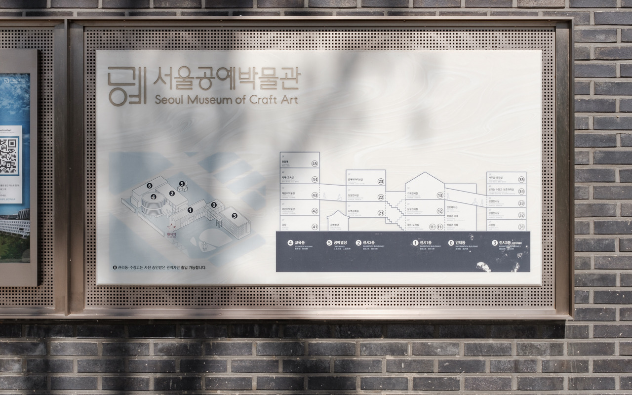 현대 공예관(전시 2동)은 위치상 존재감이 떨어진다. 대지의 가장 안쪽에 자리했기 때문이다. 건물은 골조를 유지한 채, 전벽돌로 마감된 외관으로 은행나무 배경으로 차분한 인상을 심어준다. 관리동과 이어지는 경사로는 계단으로 연결되며 개방감을 선사하는데 은행나무 아래 쉼터에 앉아 있으면 시원한 바람이 내려앉아 마음까지 시원해지는 경험을 느낄 수 있다.