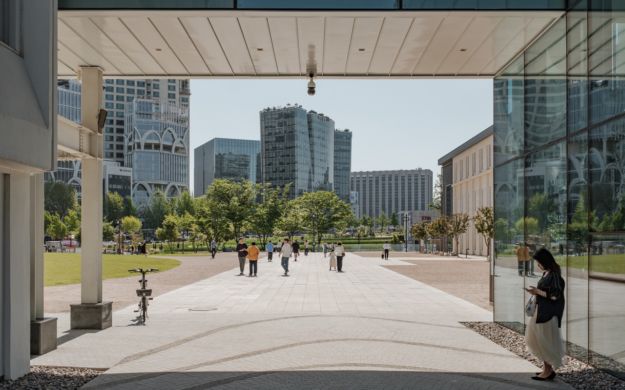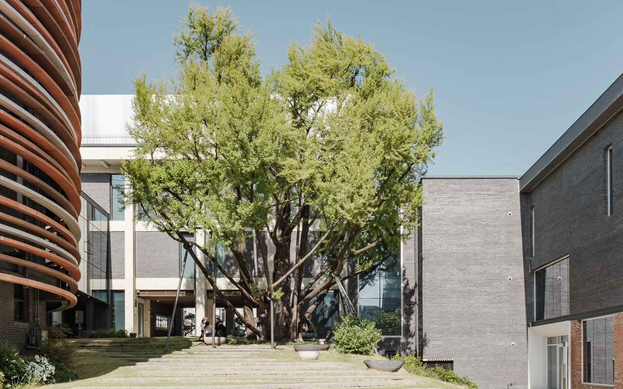 광장 앞쪽으로 열린 월대는 뒤쪽으로 들어오면서 막혀 있는데, 은행나무 쉼터는 대지보다 레벨이 높아 경사면으로 이루어져 있어 담장 너머의 풍경도 답답하지 않게 바라볼 수 있다. 오히려 오랫동안 자리를 지킨 월대의 흔적이 뒷마당을 감싸 안정감이 들기도 한다.