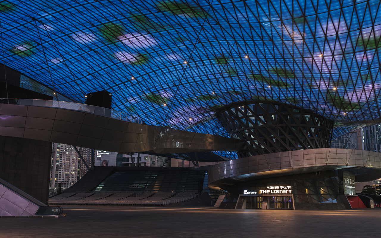 이 건축물의 가장 핵심적인 부분은 지붕이다. 더블콘의 지붕을 빅루프, 야외극장의 지붕을 스몰루프라고 칭한다. 빅루프는 비대칭 구조로 163m 중 순수하게 밖으로 나온 캔틸레버(한쪽 끝이 고정되고 다른 끝은 받쳐지지 않는 상태로 되어 있는 보) 부분만 85m에 이른다. 세계에서 가장 긴 캔틸레버다. 코펜하겐 오페라하우스가 37m, 루체른 콘서트홀이 45m인걸 감안하면 어마어마한 규모다. 지붕은 하늘과 구름의 가벼움, 빛의 반사를 표현한 것으로 하부에는 구름의 역동적인 움직임을 펀칭메탈과 LED로 표현했다. 미디어 바다를 형상화한 유기적인 형태의 led는 화려한 불빛화 수려한 형상이 주는 심미적인 아름다움만이 아닌 또 다른 공간확장의 방향성으로 공간과 사용자 간의 소통을 제안한다. 스몰루프의 하부는 야외극장으로 전용상영관과 우천 시에도 걱정 없이 영화제를 진행할 수 있게 계획되었다.