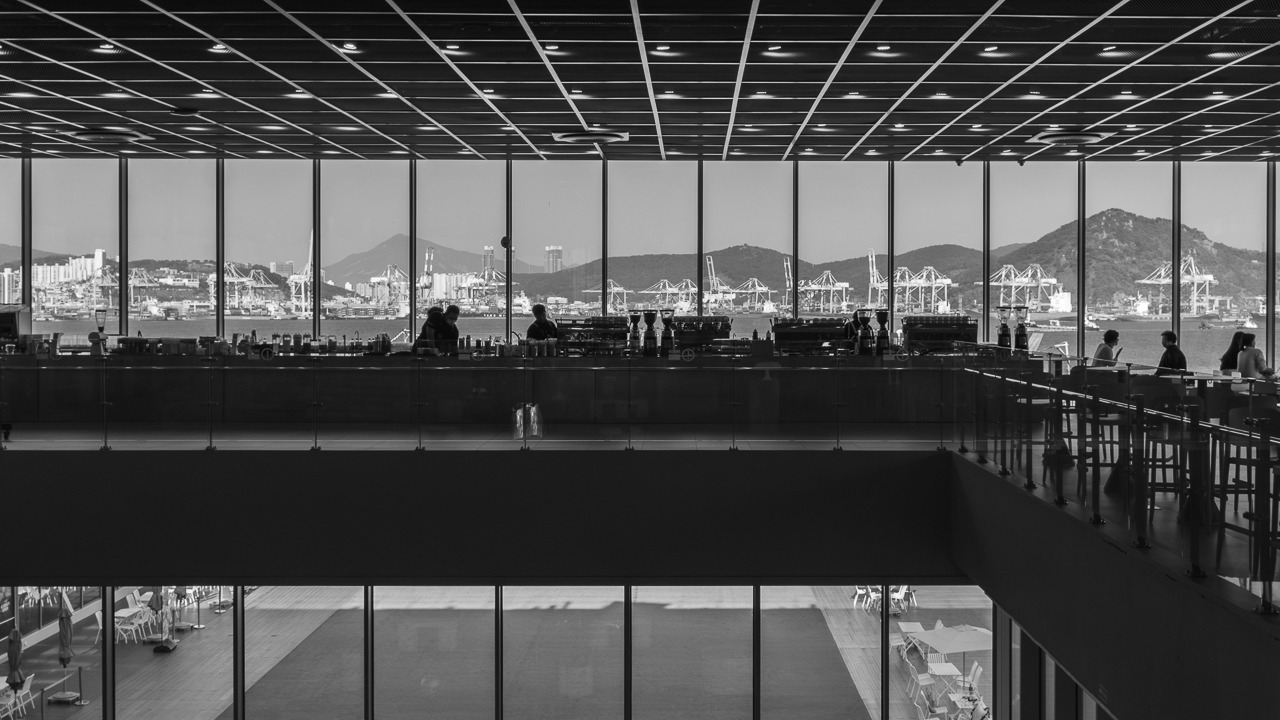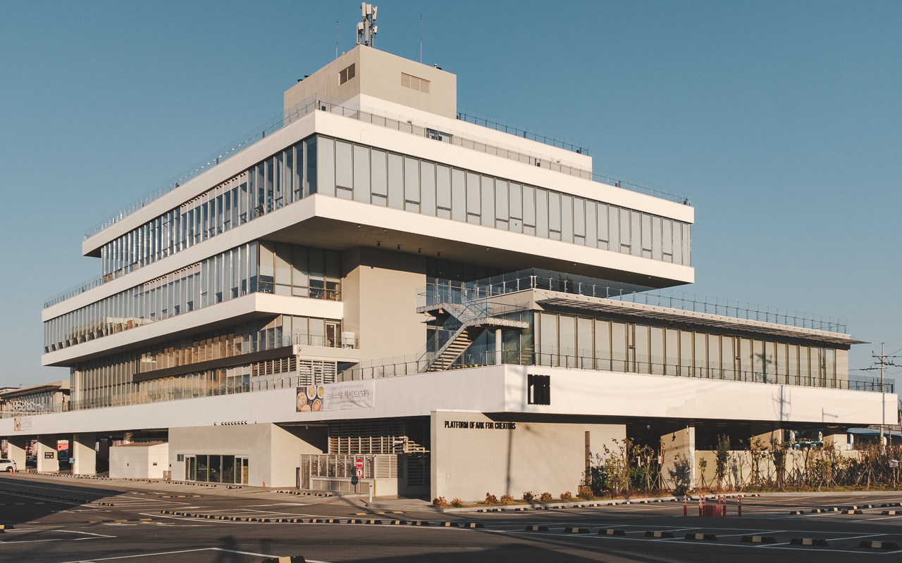 부산 영도 선박을 수리하는 회사 바로 옆, 층마다 서로 엇갈리게 쌓인 건물은 사면이 유리로 된 외벽을 통해 주변의 풍경을 흡수하고 무엇보다 바다와 가장 가까운 곳에 맞닿아 있어 땅 위에 머무르는 방주를 보고 있는 것 같다.