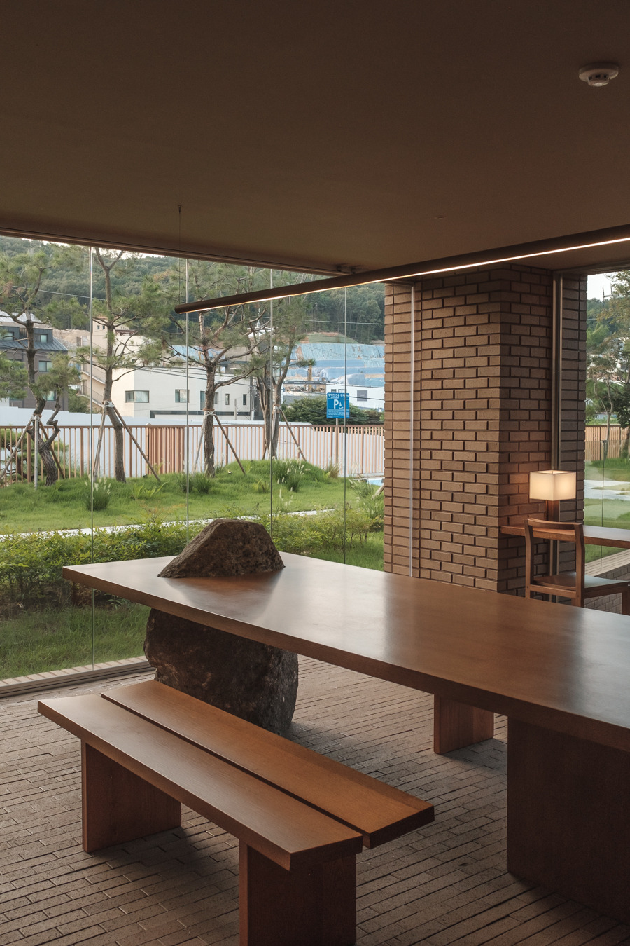 직장동료가 추천해준 장소는 용인 수지 쪽에 오픈한 지 얼마 되지 않은 카페 '타임투비'로 직장동료의 지인이 설계한 장소로 예전에 점심을 먹으면서 얼핏 들었던 기억이 났다. 여기서 얼마 멀지 않은 거리에 위치해 15분 정도 이동하면 도착할 수 있는 거리였다. 공원을 연상케 하는 조경을 끼고 있는 카페는 적벽돌 외관으로 웅장함을 뽐냈고 내부로 연결되면서 우드 톤의 포인트가 섞인 공간은 요즘 건물인 모던한 느낌이 강했다. 통유리 너머로 보이는 주변의 풍경은 한옥의 차경처럼 자연의 경치를 빌려오듯 계절이 지나며 다양하게 변하는 풍경을 즐길 수 있는 곳이었다.