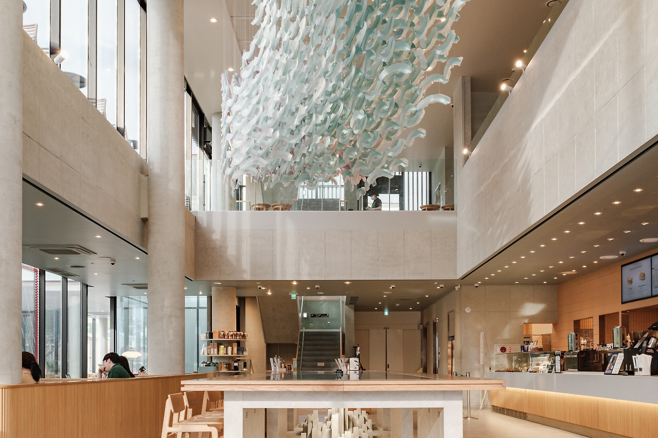 벽화를 따라 외부로 이어지는 테라스로 나가면 여수 앞바다가 한눈에 들어오는 탁 트인 풍경이 펼쳐진다. 테라스는 측백나무를 나란히 배치하고, 지중해풍 디자인을 모티브로 구성함으로써 이국적이면서도 여수의 해양 경관과 조화를 이루는 공간감을 제공한다. 또한 여수 바다를 키워드로 한 피지오, 블렌디드 등 오직 이곳에서만 즐길 수 있는 스페셜 메뉴도 준비되어 있으니 여수로 드라이브를 계획하고 있다면 코스에 넣어 방문해보길 추천한다.