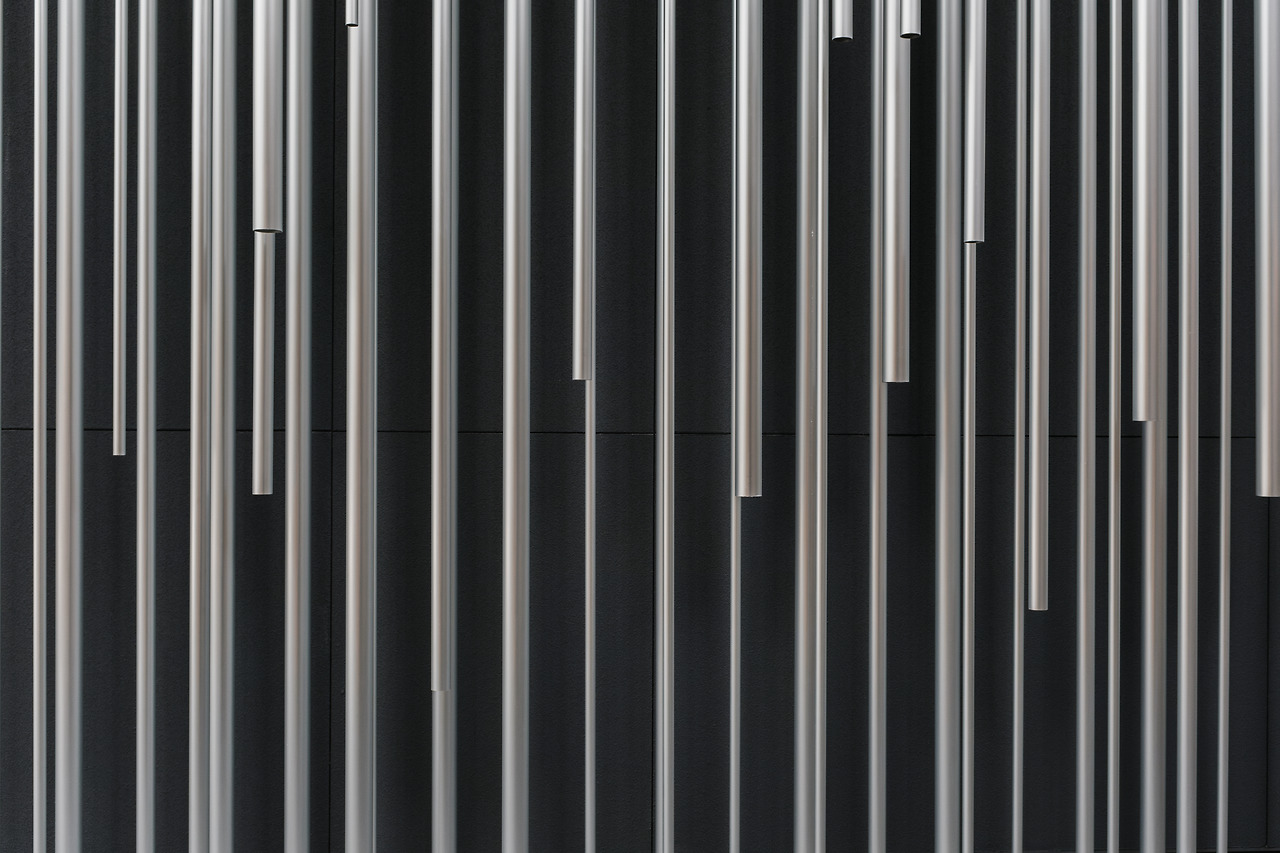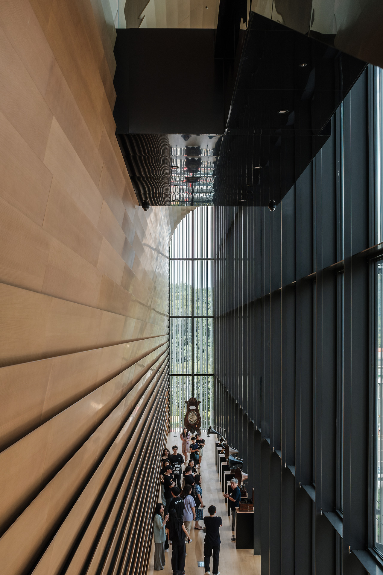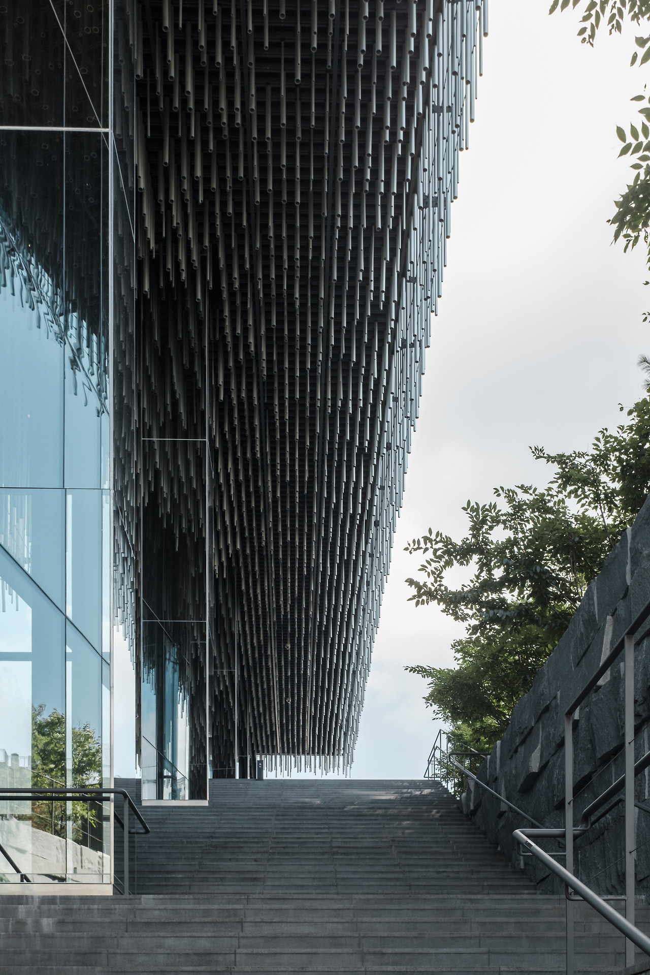 건축가 쿠마 켄고는 이곳은 훌륭한 소리를 감상하기 위한 공간이기에 인간은 자연 상태로 돌아가는 것이 중요하다고 생각해 자연의 숲과 같은 건축물 속에서 소리를 감상할 수 있는 특별한 경험을 선사하는 박물관이 되기를 원했다. 이를 실현하기 위해 알루미늄 파이프를 사용해 숲속에서 비추는 햇살을 고안하여 날씨, 시간, 계절에 따라 계속해서 변하는 빛살을 표현했고, 알루미늄 파이프를 전면에 두께나 배치를 랜덤하게 적용해 자연이 지닌 무작위성과 자연에서만 나타나는 인위적인 질서를 넘어서는 무작위성에 도달하고자 했다.