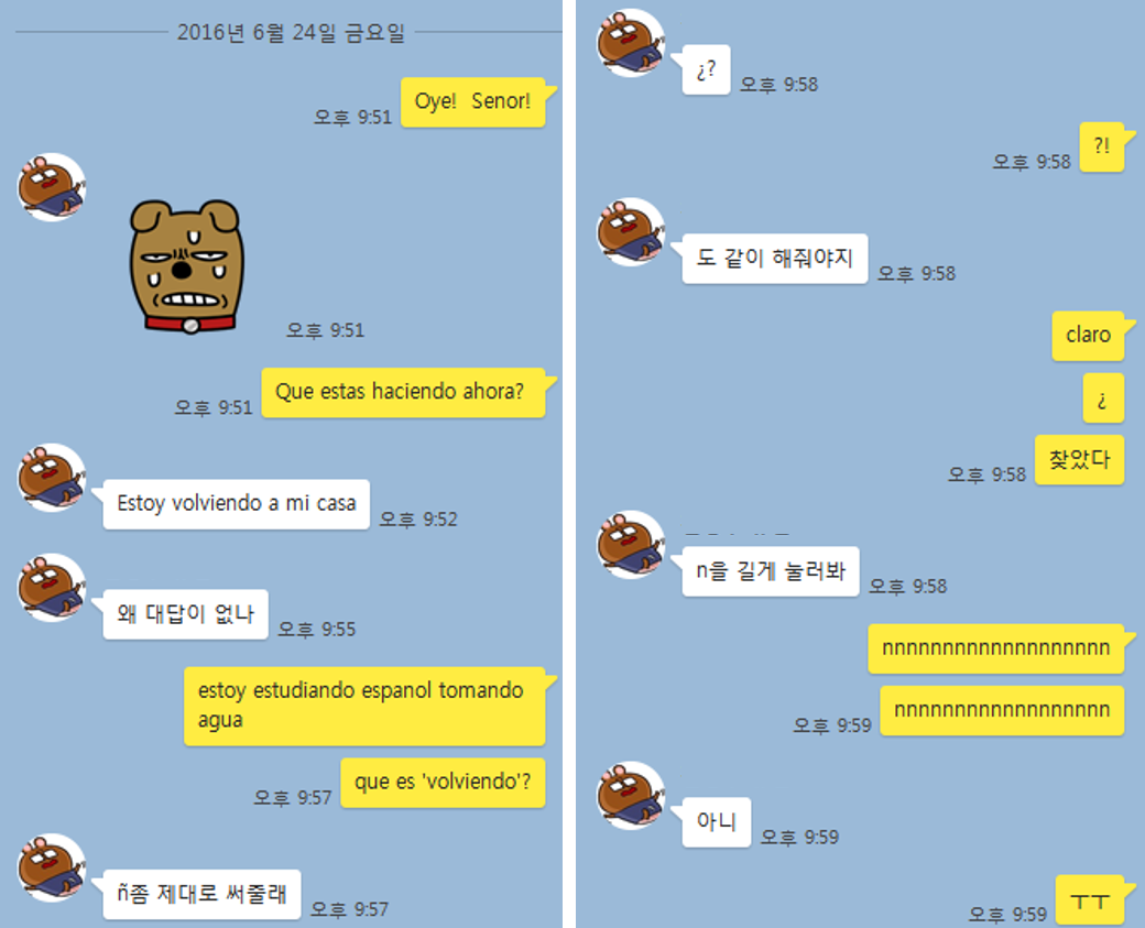 스페인어를 쫌 하는 친구와의 대화 (부끄)