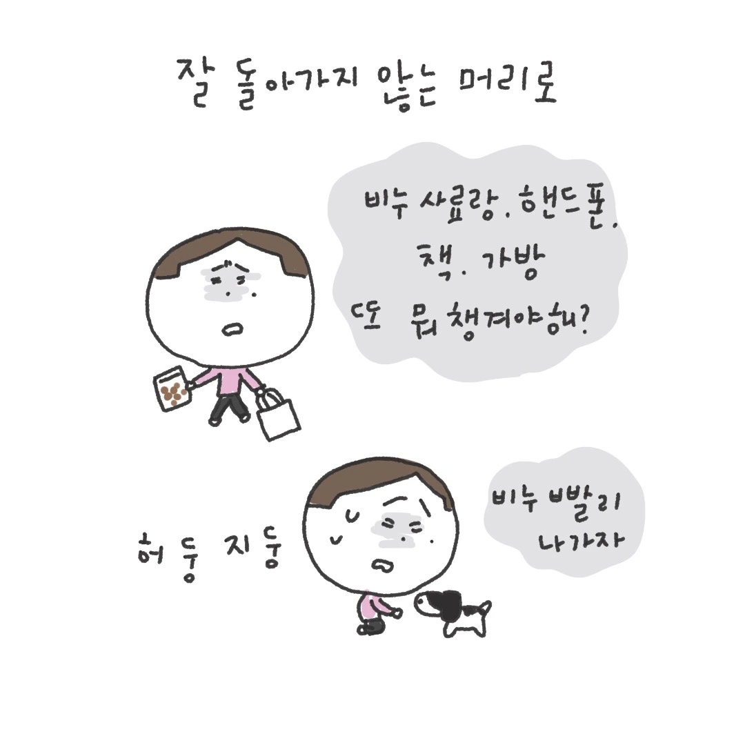 오발령인 게 다행인데 그 짧은 시간에 역시나 많은 생각과 질문이 왔다 갔다 했네요. 피가 마르는데 같이 길을 나선 강아지는 이른 산책에 신이 나 펄쩍펄쩍 점프하고 환하게 웃는 모습에 그래 네가 행복하면 됐다 맥 빠진 웃음을 짓던 아침입니다.