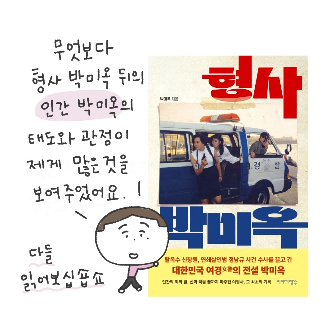 그리고 영상을 보며 이렇게 멋진 사람이 있었다니 반해 그의 책이 궁금해졌고 나는 바로 책을 찾아 읽었다. 앉은자리에서 단숨에 읽은 책은 신기하게도 형사 박미옥보다 인간 박미옥이 더 느껴졌다.