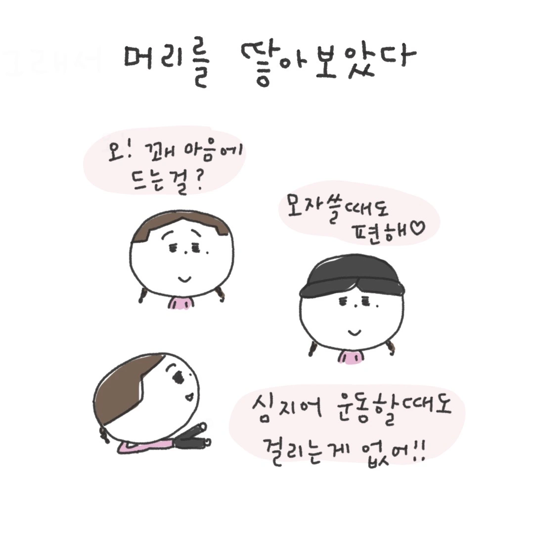 부스스함도 사라지고 모자 쓸 때도 편하고 무엇보다 운동할 때도 간편해!