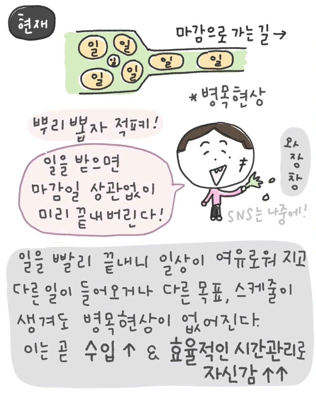 지금은 좀 더 긴 성취감을 만드는 중이다.