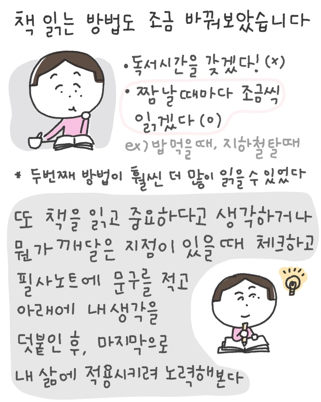 그렇게 나는 일찍 일어나고 일찍 자는 습관을 세웠다. 그리고 매끼 잘 챙겨 먹었다. 잘 먹어야 힘도 나니까. 그리고 큰돈을 들여 운동을 시작했다. 운동하며 땀을 흘리니 기분이 상쾌해졌고, 아픈 허리 통증도 사라지고 튼튼해지는 것 같았다. 몸이 건강해지니 일에 더 집중할 수 있는 체력이 생겼고 쉬이 지치지 않았다.