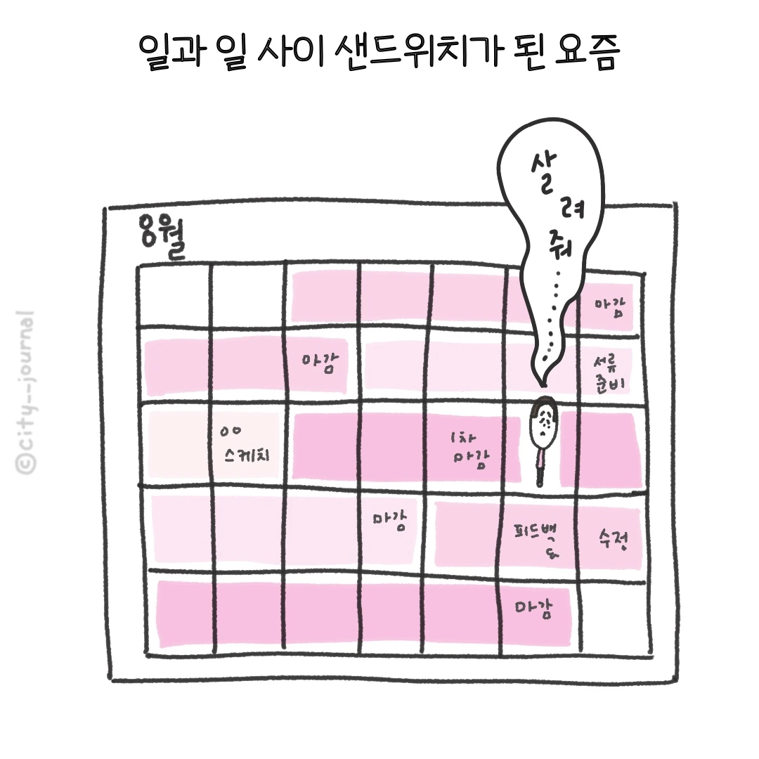 일이 들어올 때 노 저어야 하는 프리랜서라 들어오는 일 마다하기가 어렵다. 그러다 보니 일이 없을 땐 없다가 몰릴 때 몰리는 편이다.