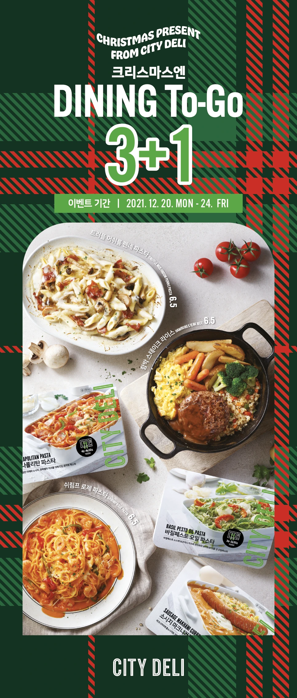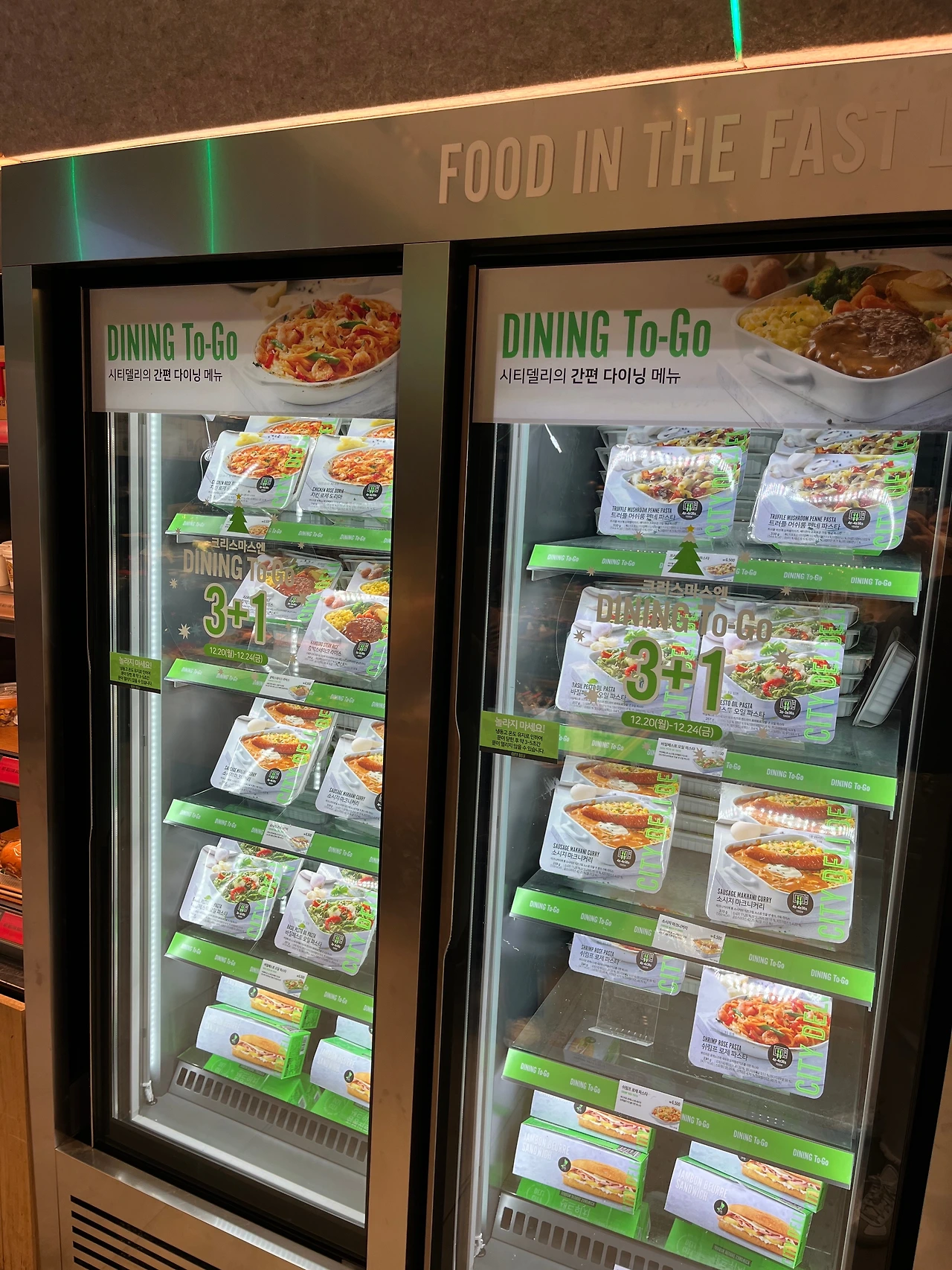 시티델리 광화문점에서는 크리스마스를 맞아 오늘(12/20)부터 12/24일까지 다이닝투고 파스타 3+1 할인 행사를 하고 있습니다. 3개를 구매하시면 1개를 Free로 드립니다. 4분 렌지업이면 근사하게 완성되는 나만의 한 끼 파스타 & 라이스 메뉴 여섯 가지 중에서 교차 구매 가능합니다.