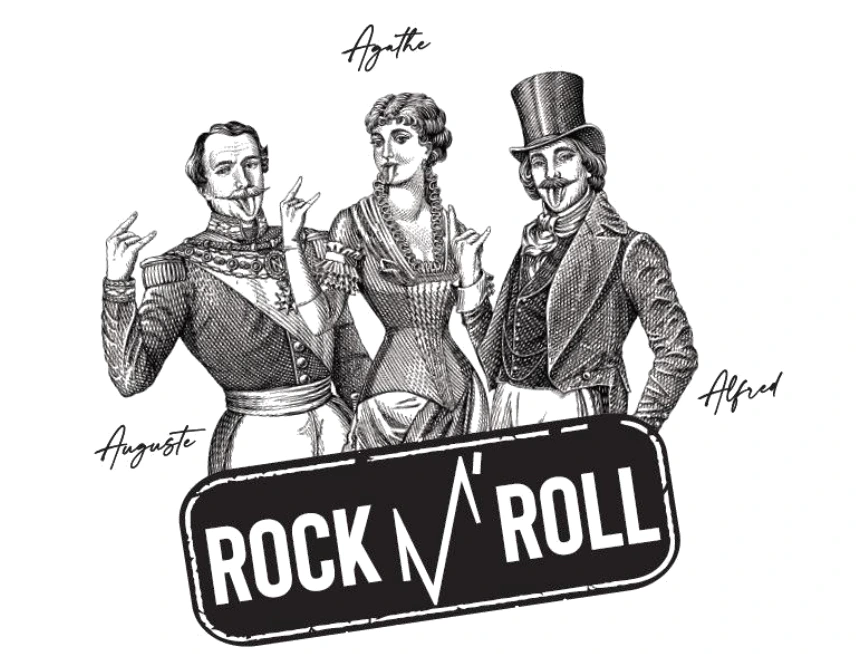 ROCK M ROLL 와인 프로젝트는 나폴레옹 3세 시대에 시작된 샤또의 에피소드를 담아서 그 당시 인물을 더 현대적이고 재미있게 표현해 보는 것으로 시작하였습니다. 1800년대에 프랑스 루아르 앙주 지역에 설립된 샤또 드 라 물룽니에르는 루아르의 유명한 와인 회사인 사제 라 페리에르에서 운영하고 있습니다. 락 '엠' 롤. 락엠롤 와인은 세 가지 와인에 나폴레옹 3세 시대의 인물인 어거스트(Auguste), 아가타(Agathe), 알프레드(Alfred)의 캐리커처를 장난스럽고 키치 하게 담았습니다. ROCK M ROLL의 'M'은 와이너리 이름 물룽니에르(Mulonniere)의 약자라고 합니다. 세 명의 인물의 스토리를 소개하고 와인 레이블을 새롭게 디자인하여 힙한 와인으로 다시 해석되었습니다.